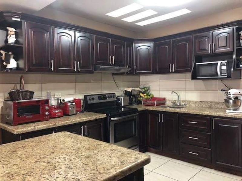Hermosa Casa de Una Planta en Condominio en San Rafael de Montes de Oca The house has an integrated dining room and kitchen, the kitchen with beautiful granite and wood furniture, with a central island, with good space. Three bedrooms, the main one with bathroom and closet, the other two of good size with their respective closets and that share a bathroom. TV room, porcelain floor, beautiful gypsum ceilings. Lamps. Independent laundry room. The condominium has 24/7 security, common areas, gym, trails, lake with ducks, soccer field and playgrounds. Condo fee 52,000 colones, pets are allowed
