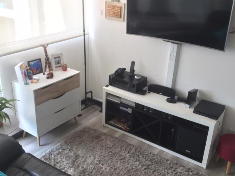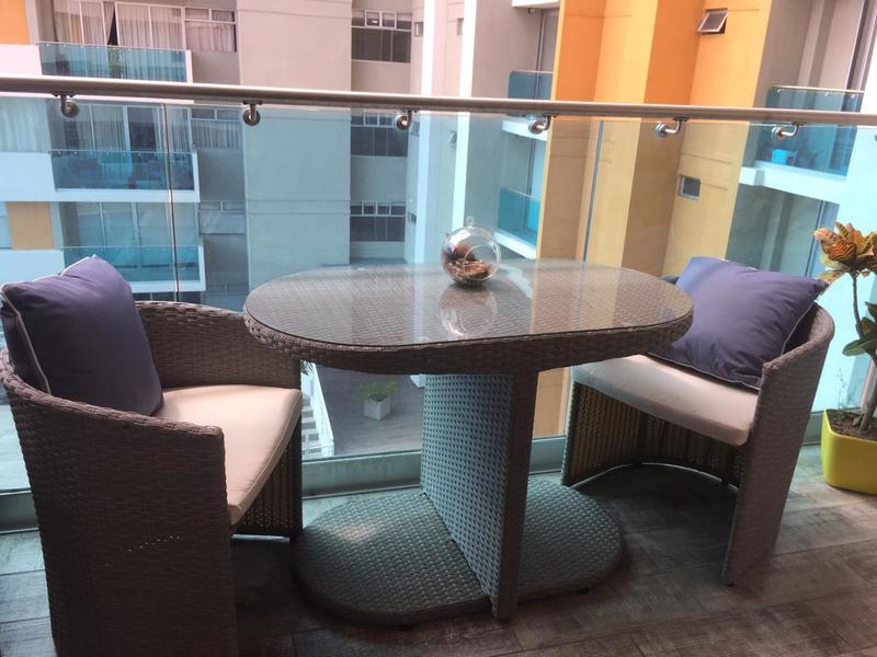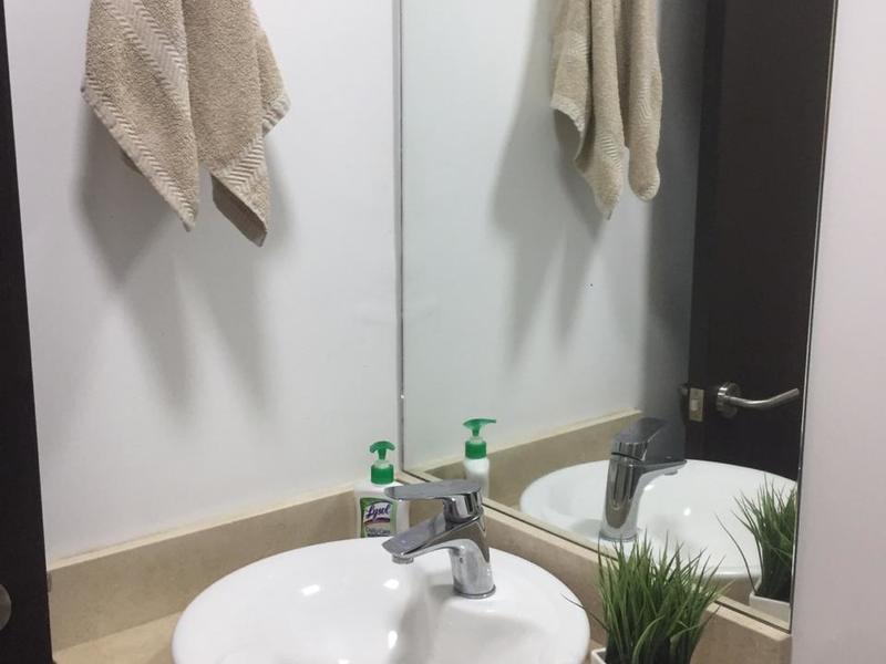 The apartment has 81m2, the two covered parking spaces cover 28m2 and has a 7m2 warehouse. The finishes are modern and of good quality, the main room has a walk-in closet and bathroom and the secondary rooms have a closet and share a bathroom. There is a half bathroom for visitors, a TV room and a nice balcony. The maintenance fee is $ 150 per month and they allow one small pet.