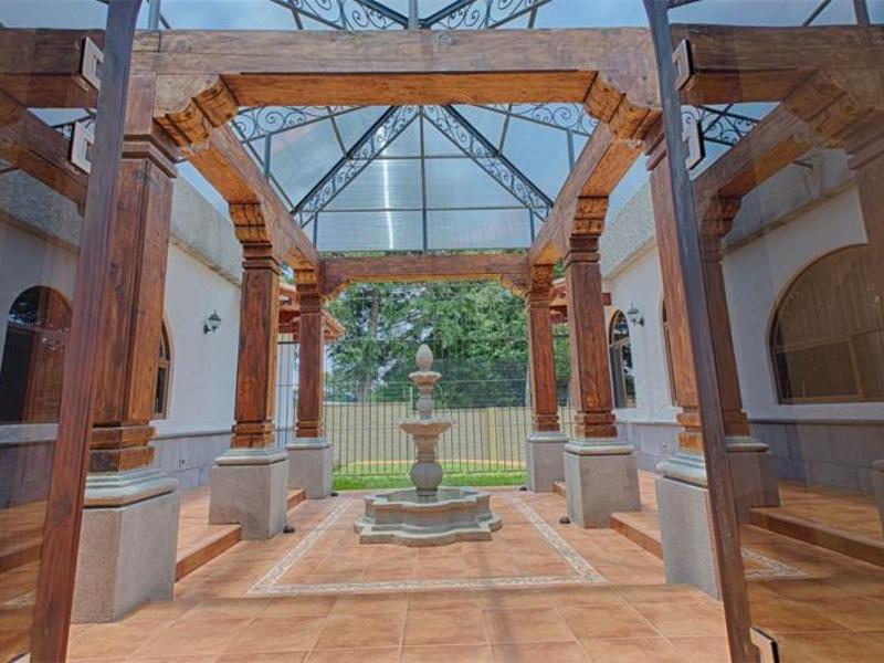 Brand new residence characterized by a Spanish Colonial design, is located in San Rafael de Heredia in the exclusive Residencial El Castillo. The construction area is 700 m² and the land is 6,427 m², surrounded by green areas with beautiful trees that provide the forest environment within the property. Access to the property allows you to keep up to 20 cars inside without saturating the spaciousness it has. Upon entering the residence, there is a large hall that leads to an internal terrace where there is a beautiful fountain that, when kept active, creates a relaxing and fresh environment. To the right there is a comfortable ½ bathroom, and a central control cabinet. Continuing to the right is the living room and dining room designed with detailed arches that rest on characteristic columns of the Spanish Colonial style. Continuing to the left we have a large kitchen, with details that elegantly define it, it has a central island and granite countertops. The kitchen also offers communication with the internal terrace. At the back you can access the service area where the laundry room is located with its laying area and a service bedroom with its full bathroom and with access through the garage. The garage is closed and has space for 2 vehicles. For its part, from the front door to the left is the large master bedroom, towards the bathroom there is a large independent walking closet on both sides. The bathroom has a Jacuzzi, double sink and separate shower, as well as a private internal terrace with a water fountain. There are also two large secondary bedrooms, each with its own full bathroom. Among the finishes are luxury Italian porcelain floors, cedar wood in doors, skirting boards, decorative frames, columns and kitchen furniture. The property includes the appliances, as well as heaters, water tanks, alarm, closed surveillance circuit. The residential has 24/7 security with controlled access.