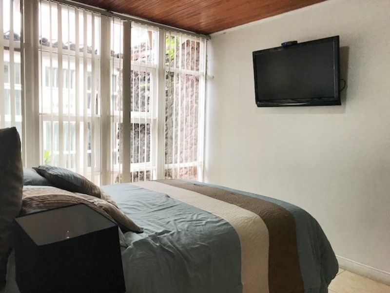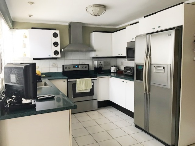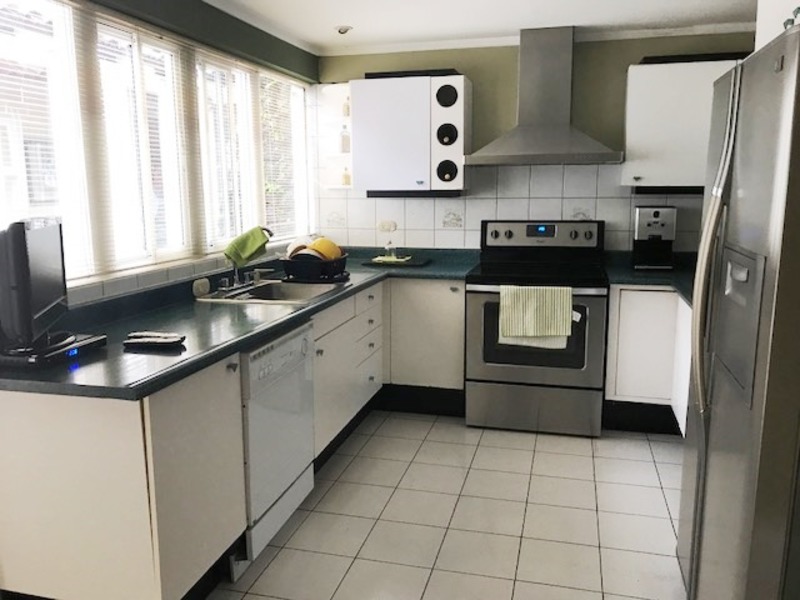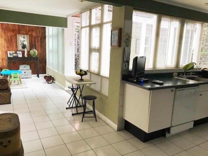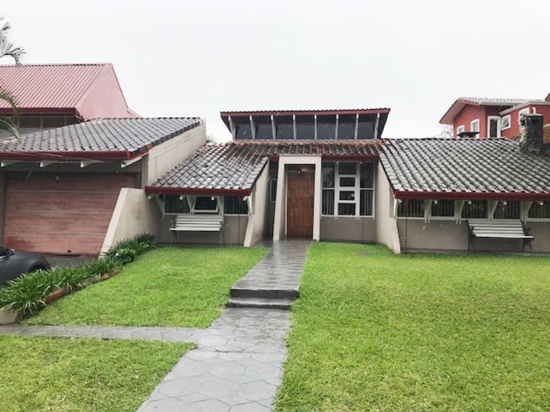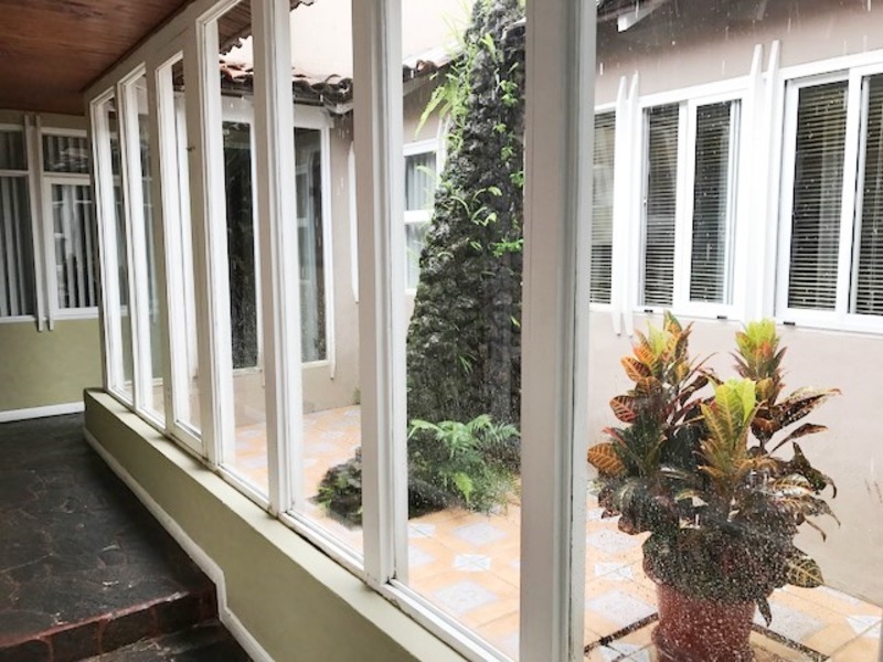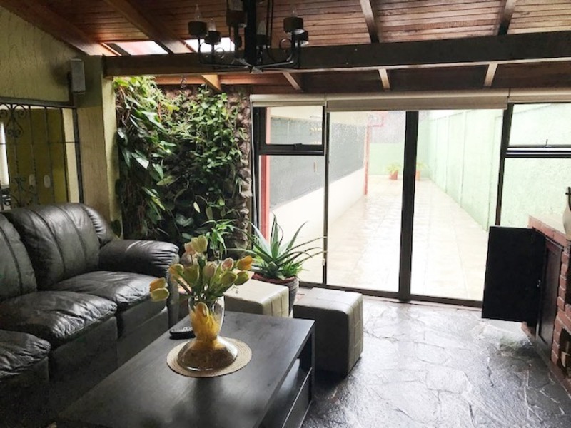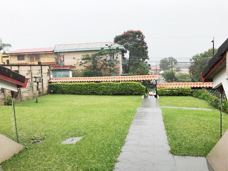 Bonita Casa de Una Planta con Amplios Jardines en San Ramón de Tres Ríos. The house has a hall, guest bathroom, living room with fireplace with coffered ceiling, family room with fireplace with BBQ area and little bar, dining room, large kitchen with thermoformed top, laundry room and covered patio, large backyard with a large garden with a small fiberglass pool; It has a cellar and a large kennel. TV room, 2 large light patios towards the bedroom area, 3 bedrooms, the main one with closet and full bathroom with toilet and bidet, 2 secondary bedrooms with closet sharing full bathroom. The house has flagstone and porcelain floors, beautiful wooden details, excellent property conditions. It has a large and beautiful front garden and parking for 3 cars, 1 covered and 2 in open space within the property. The house is delivered with lamps, curtains, dishwasher and grease extractor. The house is located in a private residential with 24/7 security with controlled access, it has a large park. Maintenance fee 27,000 colones, includes surveillance, maintenance of main green areas and park maintenance, pets are allowed