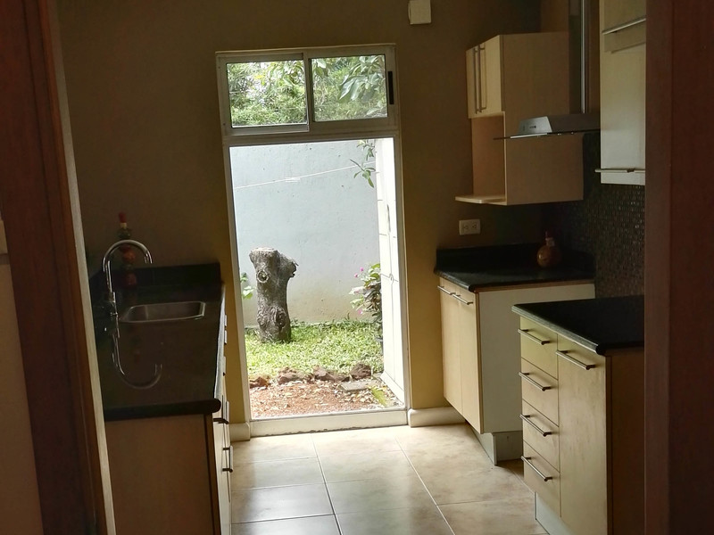 Must See! Beautiful, Modern, House in Santa Ana. This beautiful, contemporary townhouse is a must see! Located in a family friendly, secure and gated community of just 30 homes, walking distance to downtown Santa Ana and just minutes from Forum, Lindora, Multiplaza and Cima Hospital. It features an open living room, dining room and kitchen filled with light and borders the delightful patio area. Laundry/maid’s room with full bath and a two car garage completes the first floor. On the second level, the spacious master bedroom with a walk-in closet, ensuite bath and small balcony with mountain views. There are also two other bedrooms and a full bath. On the top floor, a spacious open atic with all the conections needed to build a full bath; It can be used as another bedroom or an office. The community has a playground, rancho and pool just steps from the house. Contact me at m@cbrealestatecr.com to make an appointment to see this beautiful home.