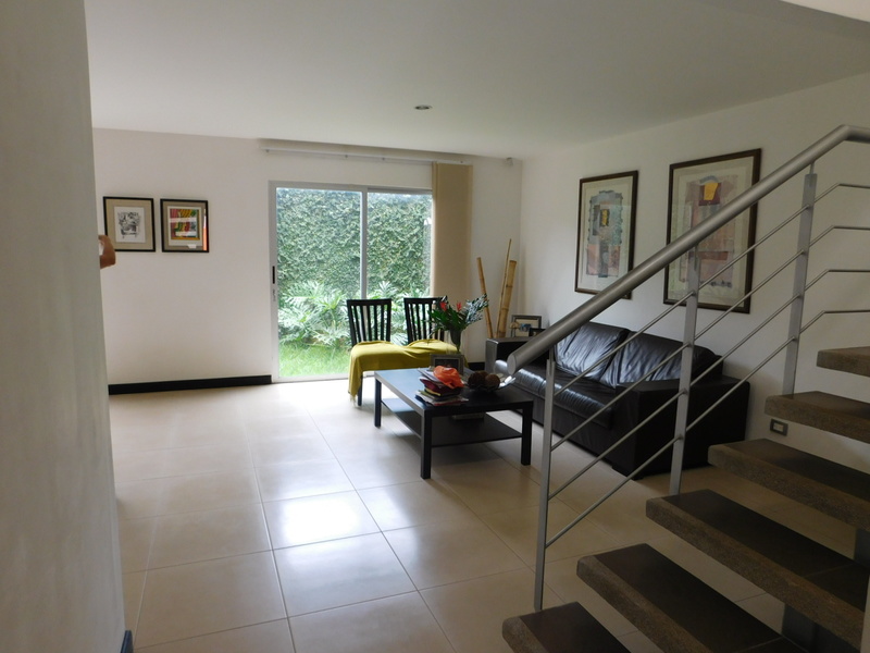 House for Sale in Santa Ana, Gated Community, 3B, 2.5B. This beautiful and modern house offers on its first level: a spacious and cozy dining room, lit by a spectacular natural light provided by large windows and custom maid curtains (Hunter Douglas); a beautiful modern kitchen, with an island to the share to share great moments with friends and family, made with quality materials and functional modern details; an ample living room, guest bathroom, laundry area, a covered terrace and covered parking for two cars. On the second level there are the spacious and comfortable bedrooms with walk-in closets and cute bathrooms. It also has a space that can function as a study room or can be adapted to the needs of the family. The master suite has a private office. Outside it has a large green area and a cozy and comfortable covered terrace. The condo is private thus providing greater security for home owners. It offers: a swimming pool, jacuzzi, parks, playground, BBQ area and clubhouse. Book your appointment and make this your new home. Also for rent $1800