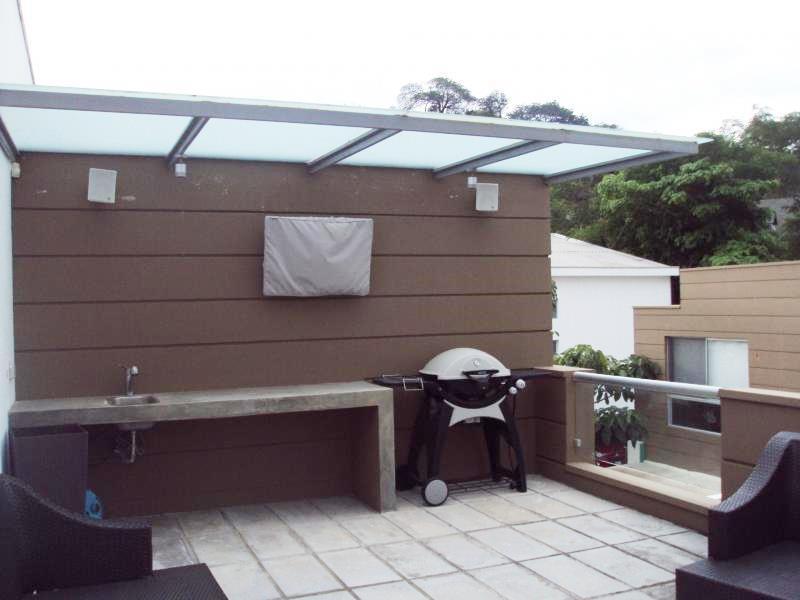 Hermoso Condominio Recien Remodelado de Tres Plantas en Santa Ana The townhouse is distributed on three floors as follows: First Floor: Guest Bathroom, Living Room, Dining Room, beautiful contemporary kitchen with granite countertops, laundry room, utility room with bathroom, rear garden. Second Floor: Large master bedroom with lots of lighting, walkin closet and full bathroom, two secondary bedrooms with closet (one of the bedrooms is functioning as a living room, it has planned to close and function as a bedroom) and a full bathroom with envelopes marble to share, cellar and white closet. Third Floor: Entertainment area, TV room and bar, as well as a nice and large terrace with BBQ area. The condominium has first class finishes, intelligent sound system, European style windows, air conditioning in all bedrooms, water tank, garage for two vehicles. The condominium complex has beautiful social areas, swimming pool, ranch, tennis court, children's playground area. 24/7 security with controlled access, the maintenance fee is 130 thousand colones per month including water, pets are accepted.
