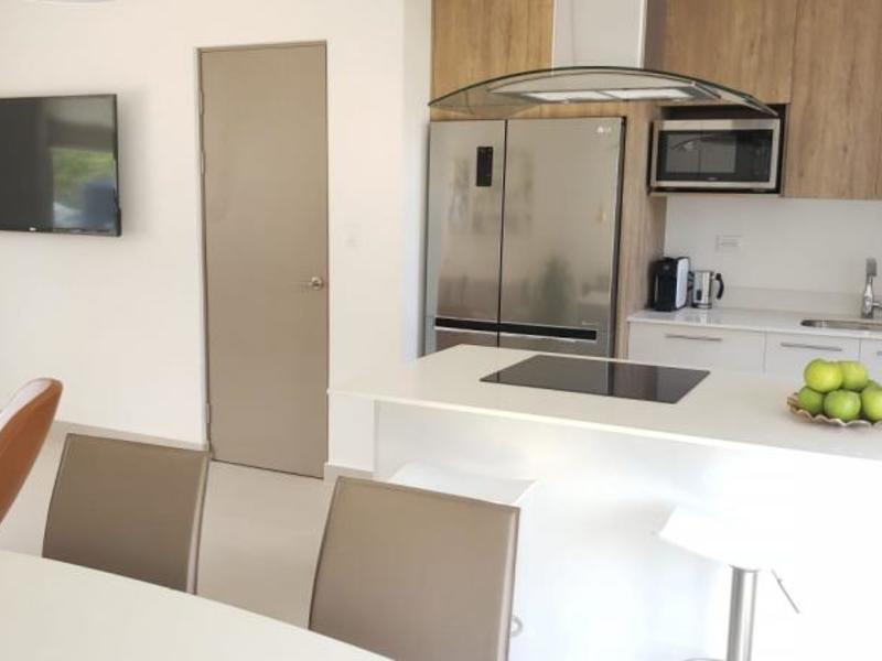 Hermosa Casa Nueva de Dos Plantas en Condominio en Pozos de Santa Ana. Condominium of independent houses in Pozos de Santa Ana with luxury finishes at introductory prices. Total area 115 m2 plus garden area, with more than 3,000 m2 of green areas. The condominium has the following amenities: Heated pool with swimming lane and area for children, cardio gym and weights, clubhouse, play for children, cobbled streets, underground wiring, treatment plant, drinking water reserve tank, 24 security / 7 with controlled access. 115 m2 more First floor: covered garage for 2 vehicles, integrated dining room and kitchen, kitchen with Euromobilia furniture with quartz top with breakfast bar, laundry area, rear patio area with natural garden. Second floor: 3 bedrooms, the main one with a large closet with a full bathroom, 2 secondary rooms with a closet sharing a full bathroom. Maintenance fee $ 140 per month, medium pets allowed.