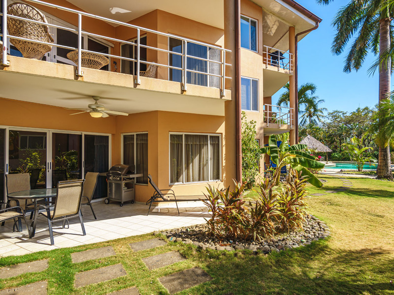 This ground floor, 3 bedroom, 2 bath condo is located just off the main beach in Langosta and overlooks through the trees, Pool and gardens of Bahia Langosta.