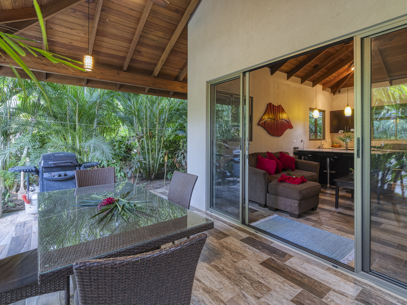 This villa is beautifully landscaped with overflowing trees and plants. There is plenty of room to plant more trees. The home is in a secure neighborhood since it’s properly fenced and there are an alarm system and a safety deposit box inside. It’s currently being used as a successful rental, and there is space to build the main house if you choose to.