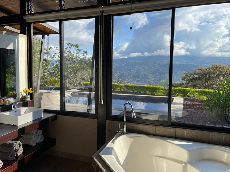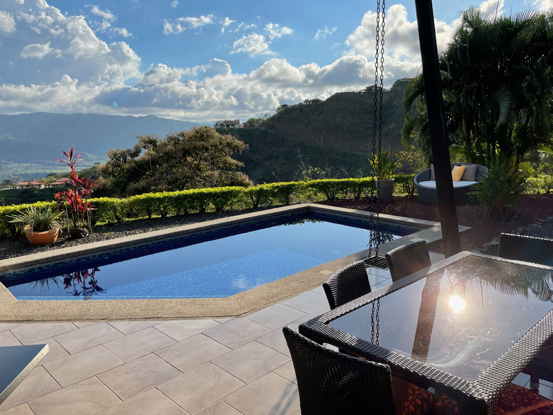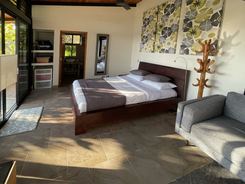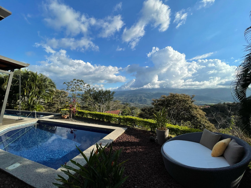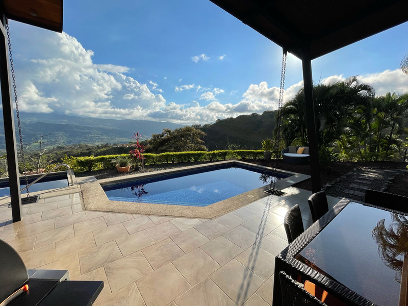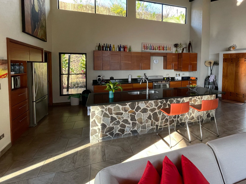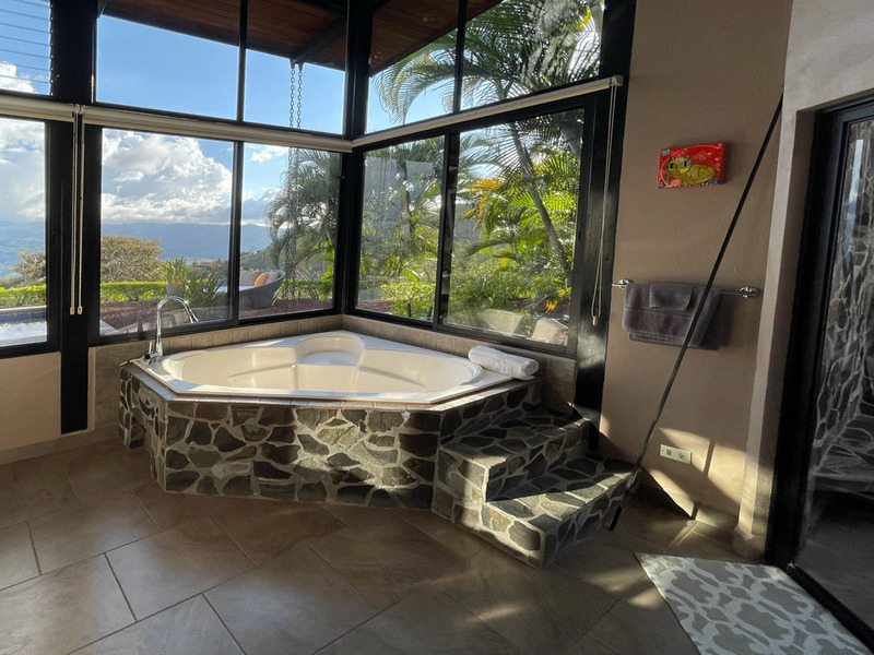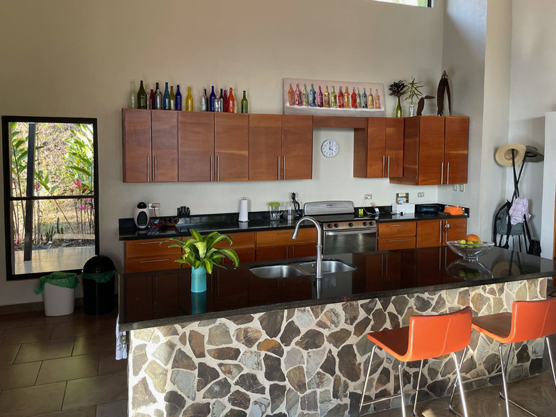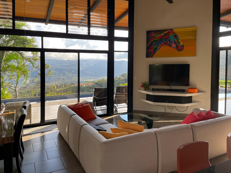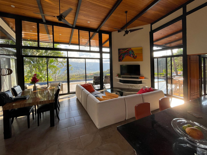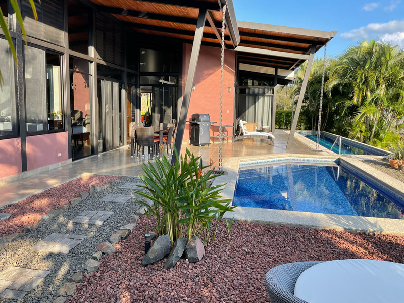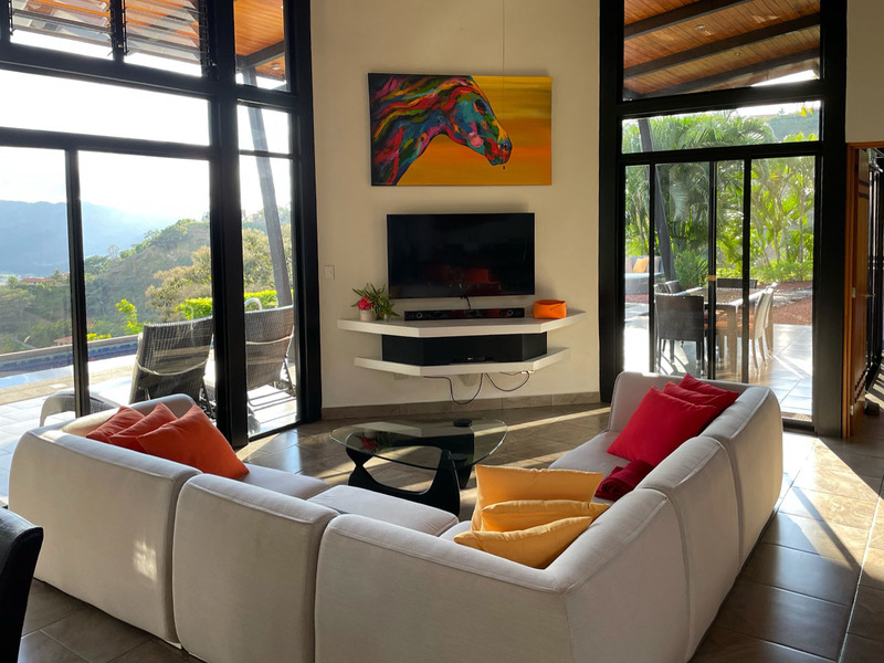 This beautiful contemporary design home is move in ready. It is being sold fully furnished. Move in and live here full time or use it as a vacation rental. The main house features a master suite with ensuite bathroom with a large tub, outdoor shower and closet. The second bedroom is very large and has a bathroom next to it. The large open concept kitchen and living area has a wonderful view and floor to ceiling widows. There are two pools. One is a lap pool and the other is a tradition type pool. The views are amazing day and night. There is a separate bedroom with a nice sitting area outside, bathroom and privacy. There is a nice walking trail. The home is in one of the popular gated communities and ready for you to move in. Call or email Coldwell Banker Pura Vida Paradise now for a showing or more information.