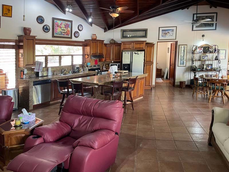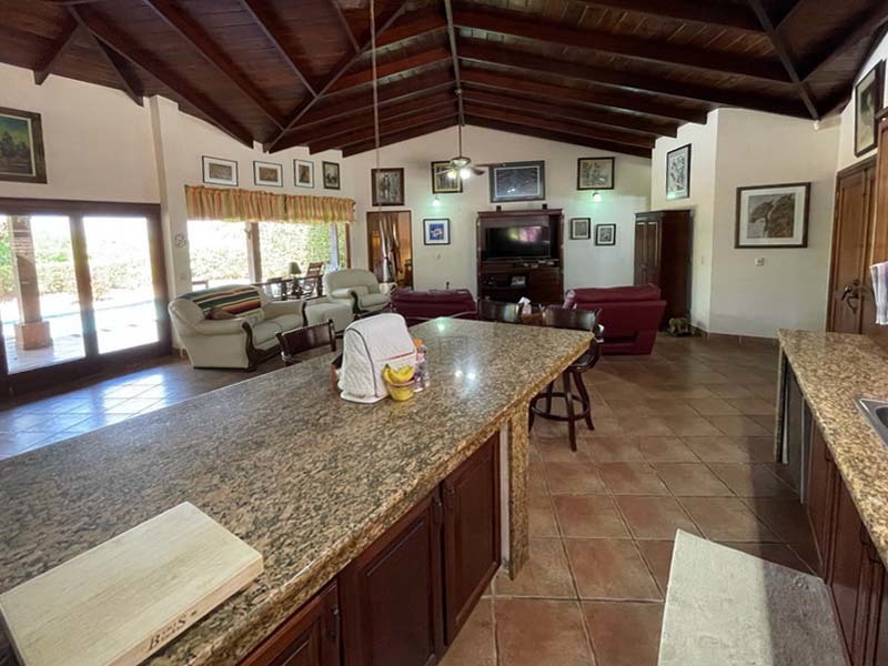 JUST REDUCED 20K! This beautiful house is in one of the best residential areas of Atenas. The house is very private and safe. It is on a one half acre lot and has construction of 300 square meters (over 3,000 square foot). There are 3 bedrooms, 2.5 bathrooms, parking for 3 vehicles, and a swimming pool. It also has a beautiful kitchen with great cabinets and a nice island with granite countertops. The high ceilings keep the house very cool, and has nice views of the yard, and many fruit trees. As an added bonus, the pool has solar heat. Perfectly located just 2 minutes from downtown Atenas, 25 minutes from Juan Santa Maria international airport and 50 minutes from the Pacific coast. Call or message Coldwell Banker Pura Vida Paradise today for more information or a showing.