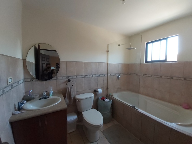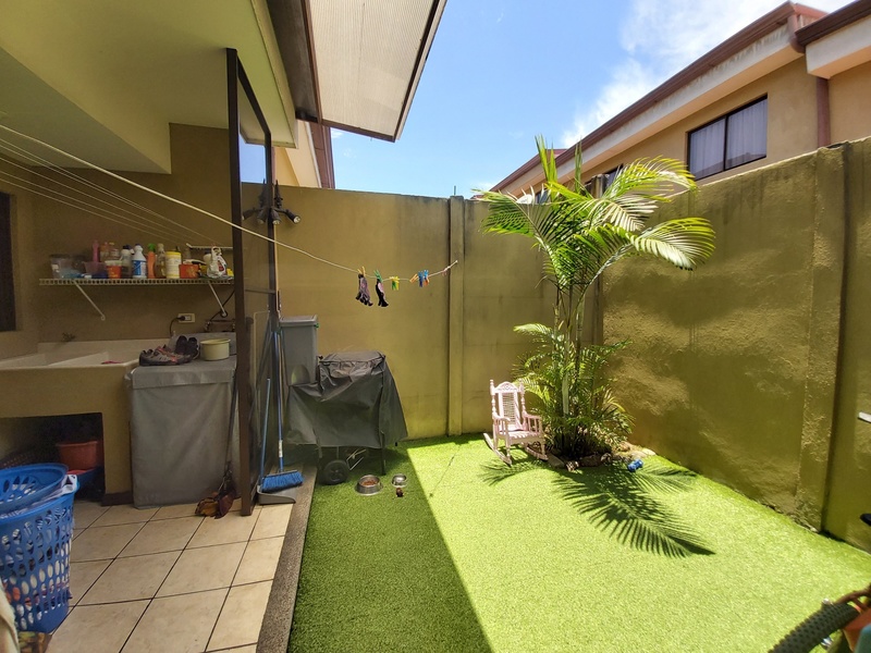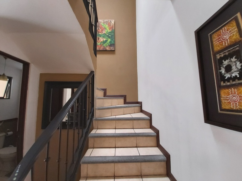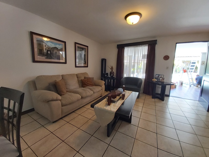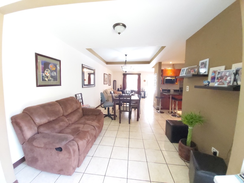 Two-story house with integrated living room, dining room and kitchen. It has a TV room and a small back garden. Battery area. guest bathroom and cellar Three bedrooms and two full baths on the second floor. The condo has 24/7 security. 75,000 maintenance is paid. It has a pool area. Club house Gym Dog park.
