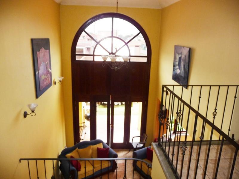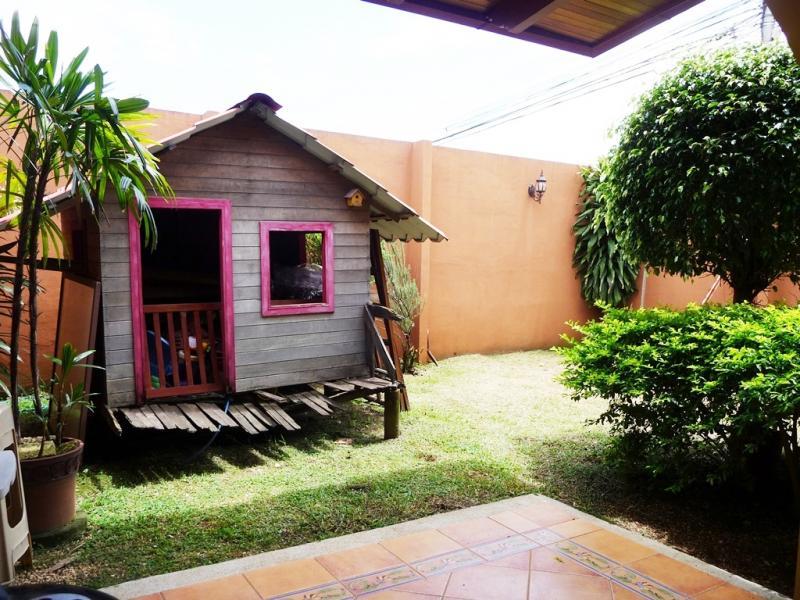 Casa Esquinera de Dos Plantas en Curridabat. First floor: covered garage for 2 vehicles, guest bathroom, cellar, large double height room, good dining space, large kitchen, laundry area. Covered terrace as a BBQ area, large rear garden. Second floor: 3 bedrooms, the main one with a balcony, and a complete bathroom with Jacuzzi and separate shower, 2 secondary bedrooms sharing a complete bathroom. The house is located in a gated community with 24/7 security and a security fee of 55,000 colones per month is paid, pets are allowed.