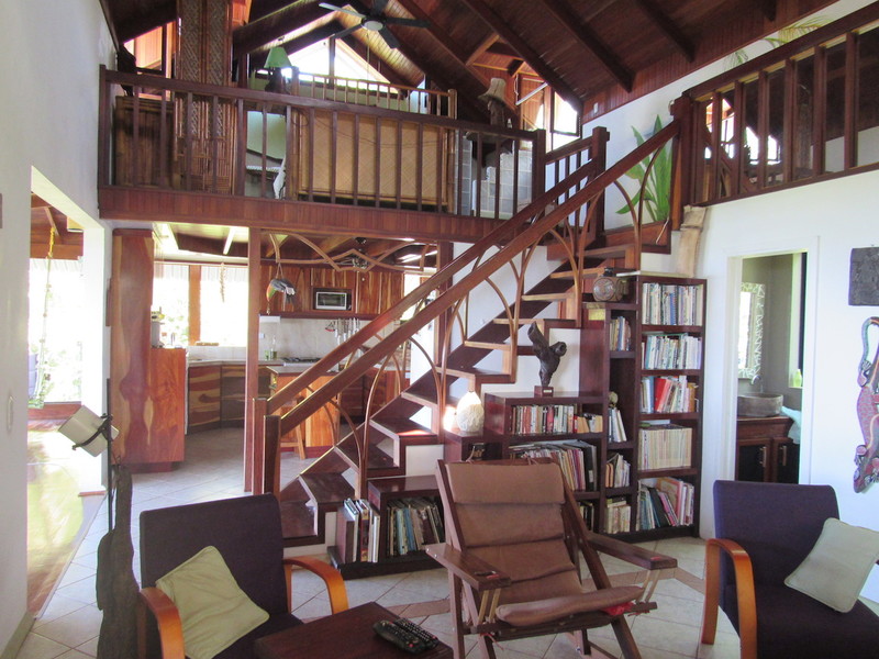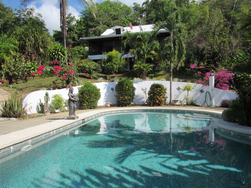 The owner has been very casual about running it as a business but with the 2 rooms for rent in the main building and the seperate rental cabin there is plenty of potential for profit. From the rentals that there have been, people have been very happy which can be shown by the excellent review received online from past guests.The main building has the owner's house upstairs. It consists of a gourmet kitchen with exotic hardwood cabinets, living room, and screened in veranda with a large suspended dining table and a second living room. The ocean views from this floor are spectacular. Upstairs from this in the loft is the master bedroom and bathroom. This home is built with many exotic tropical hardwoods including purple heart wood and cristobal. On the first floor of this main building is a large covered patio and 2 rooms for rent, each with their own private bathroom and a shared kitchenette. This area also looks out over the pool and out to the ocean.The owner just recently built a 1 bedroom rental cabin with living area, full kitchen, and a beautiful outdoor patio with amazing ocean views. Both the cabin and the main building have pathways down to the best part of the property, the pool and ocean view pool deck.
