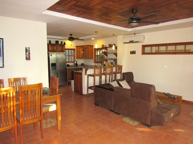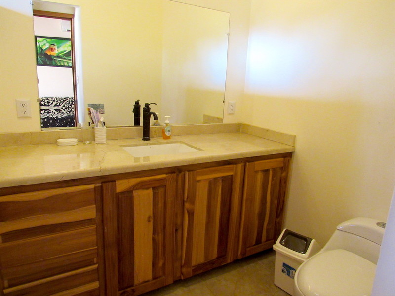 The home is located on a quiet street In the Dominical, just 200 meters(600feet) from the water of Playa Dominical. It is close enough to hear the waves, and faces open and treed horse pasture across the road and on the east side, while the back faces a mature mango grove. Ocean views can be had from the second floor balcony. This property is as close to the ocean as you can get in Costa Rica and still have Titled Property. The property is ideal in that you get all the amenities and conveniences of being in Dominical, but it gives the feel of being in the country.