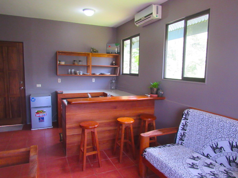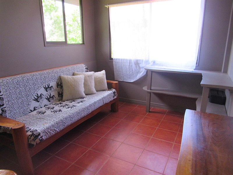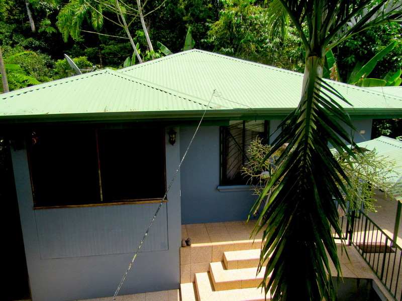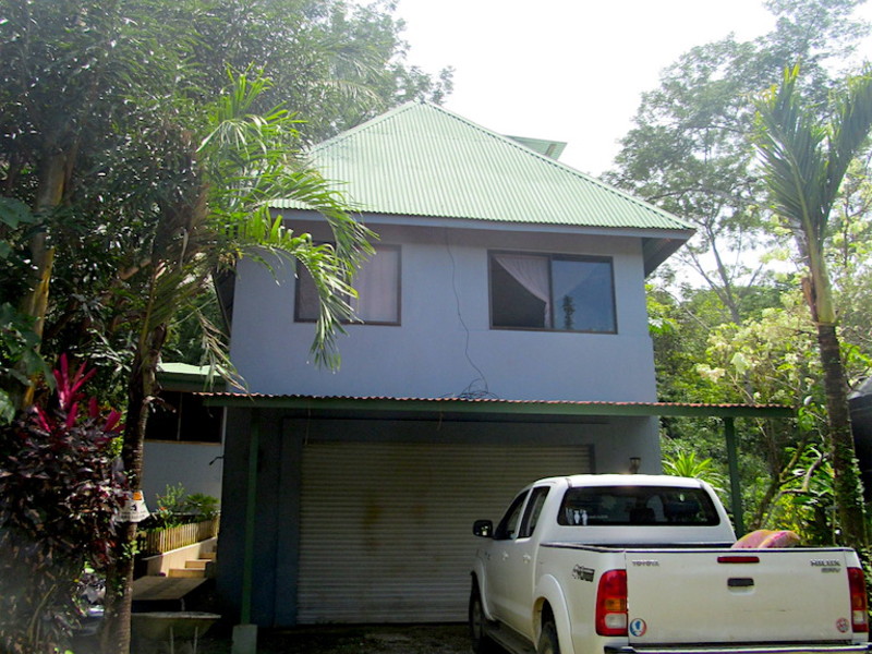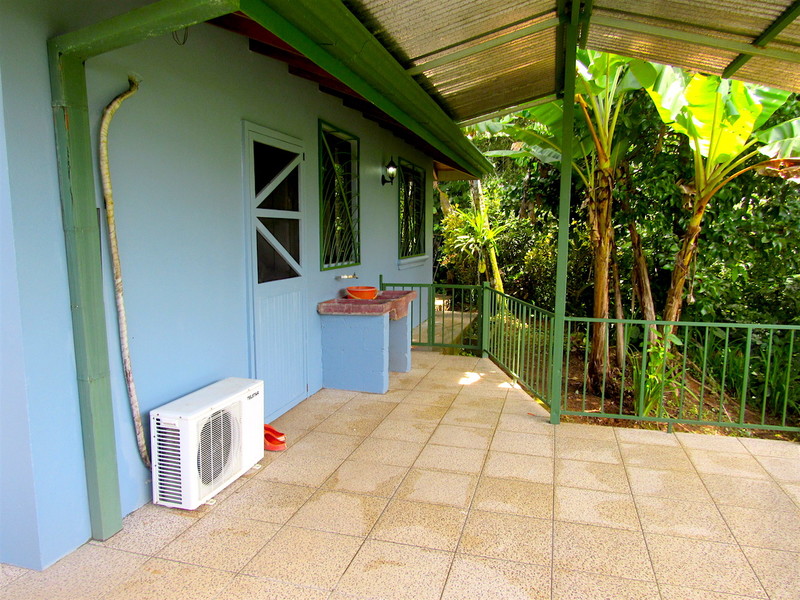 The main house is a 2 bedroom, 1 bathroom with kitchen, living room, and screened in porch. It is a very comfortable home. It has AC and is being sold fully furnished. It also has a 400 sq ft deck that looks back at the jungle. The house and property are set back at the end of a 200 ft long driveway and tucked away off the main road for some privacy.