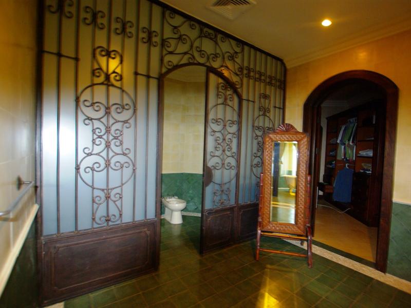 The Master bedroom is on the main floor and is perfectly sized. Walk into the huge bathroom where much thought was give to his and her elements. Tub, large dual shower and extended walk-in closet awaits. From here you may walk right outside and dive into the pool or walk a few short steps the the forth room that is currently used as a office.