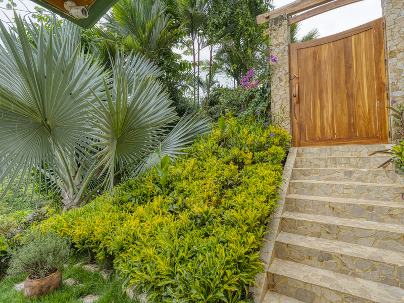 building pad, the villa, a waterfall, and tropical gardens. A dramatic artistic gateway made with