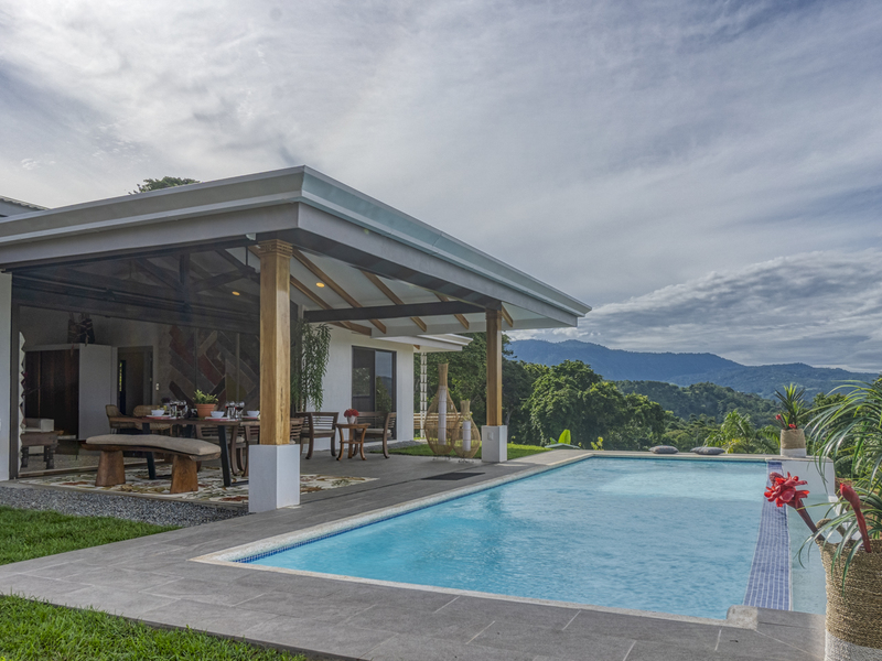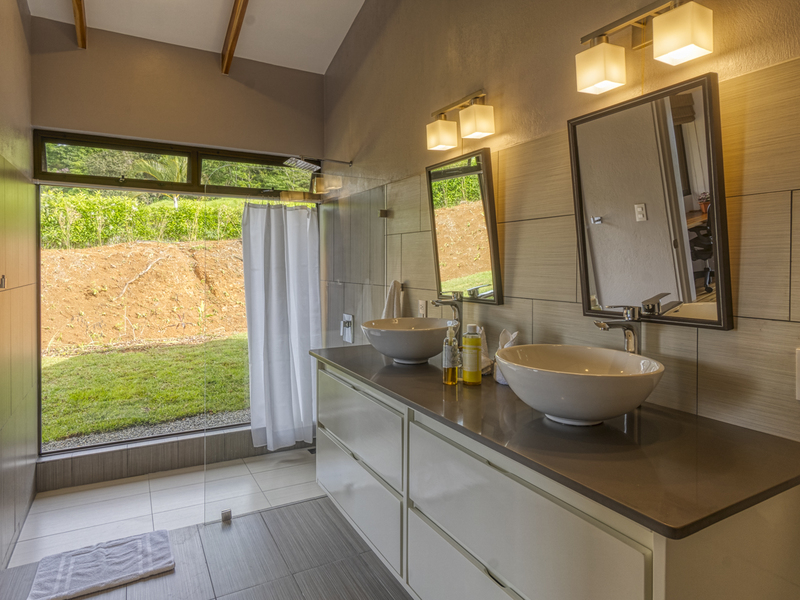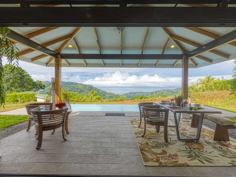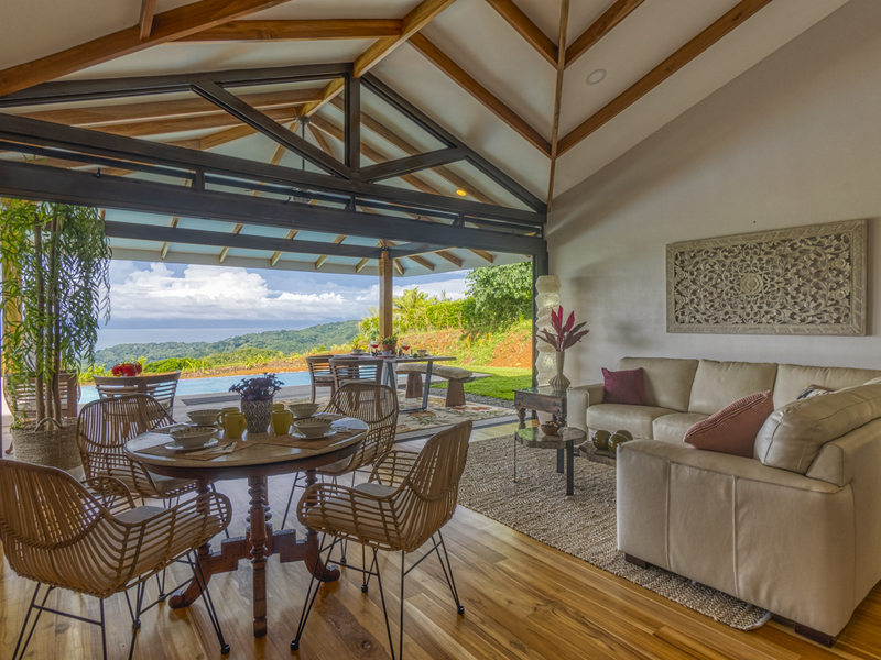 This new home was designed with picturesque Costa Rica setting in mind. You can feel the fresh mountain air and bright sunshine from every room of this home, but especially from the outdoor patio and the infinity pool. As soon as you enter the home, you can see dramatic ocean views for miles. If you hear a large wave, it is because the sound is magnified, almost as if by a microphone. What an experience that is!