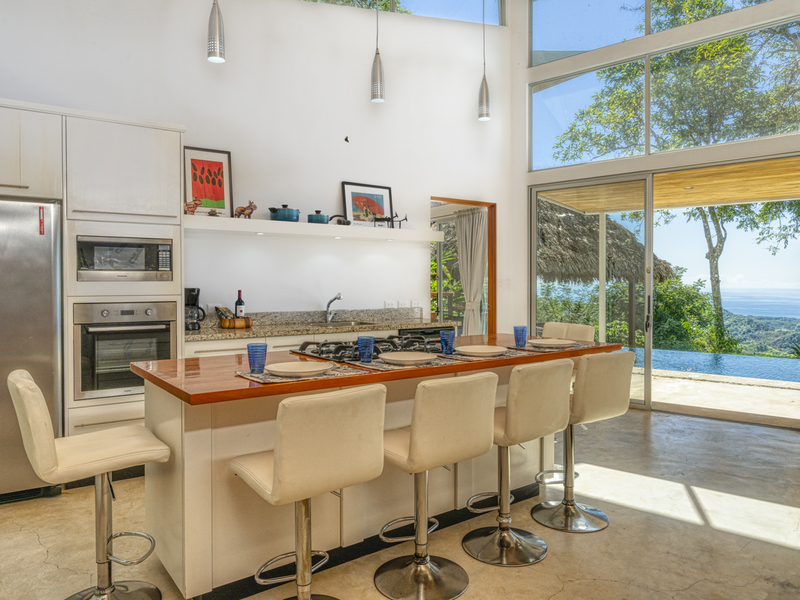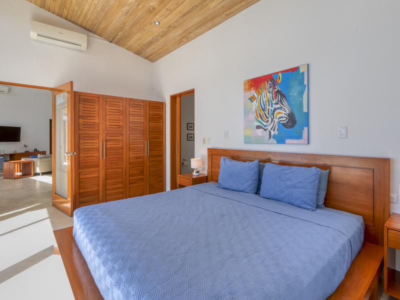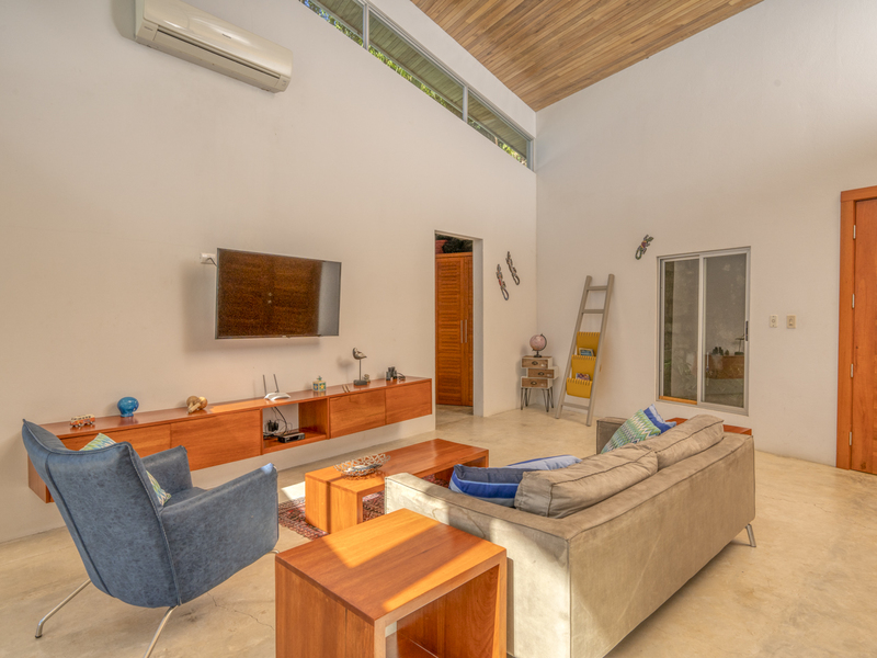 This luxury home can accommodate up to six people. Each of the bedrooms features a king-size bed, vanity table, and a spacious closet. Each of the bedrooms also features its’ own glass sliding door and private terrace, either overlooking the jungle or the pool. It’s the perfect place to watch the sunrise and sip your coffee. There are two full-size bathrooms, including one in the master suite. This bathroom includes double vessel sinks and a large tile shower facing the rainforest.