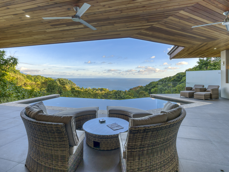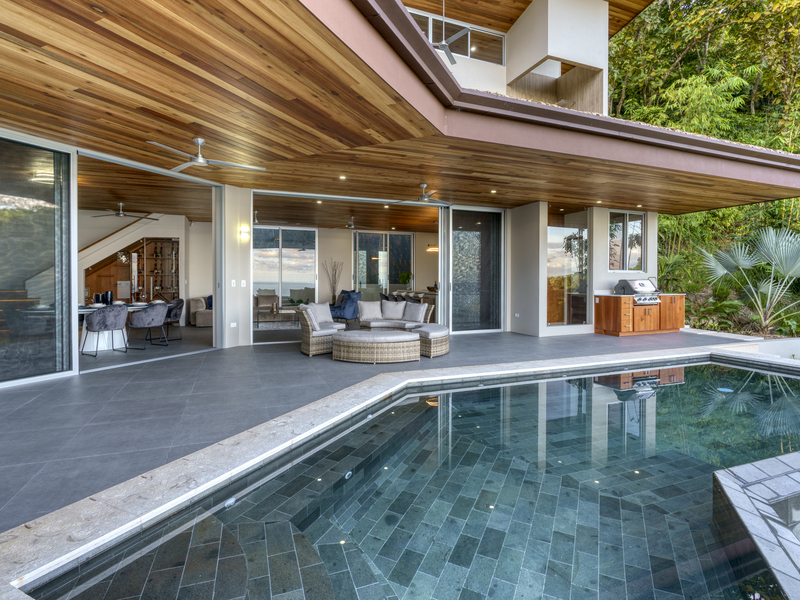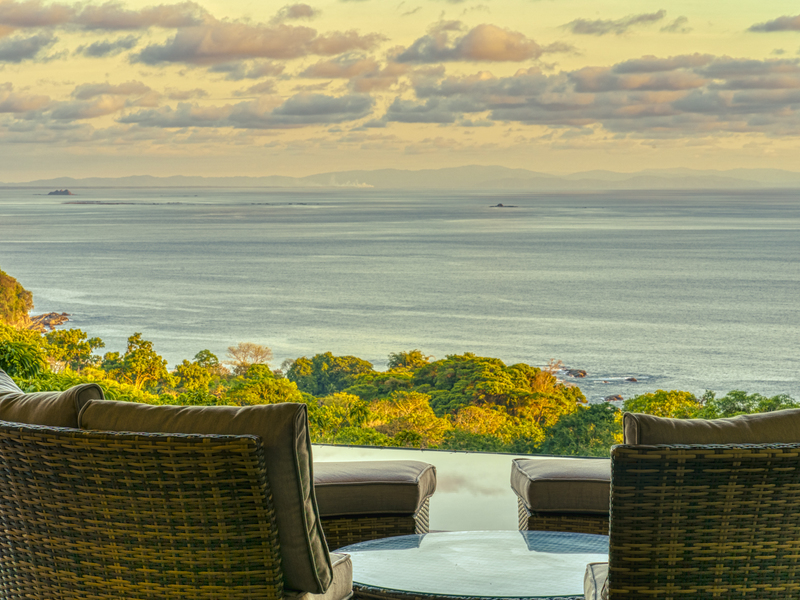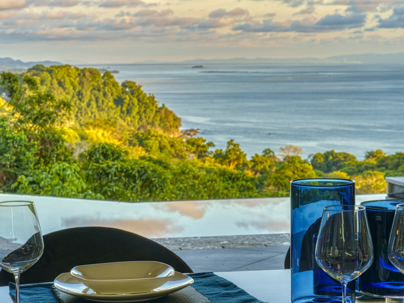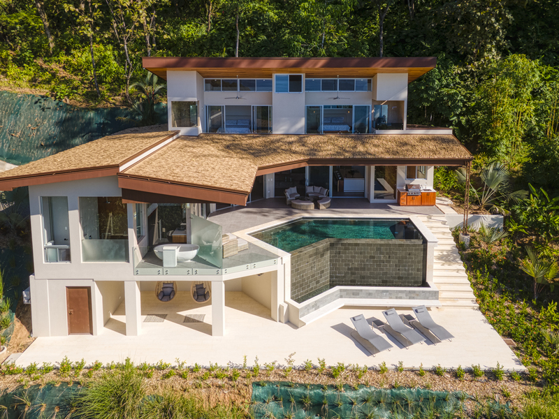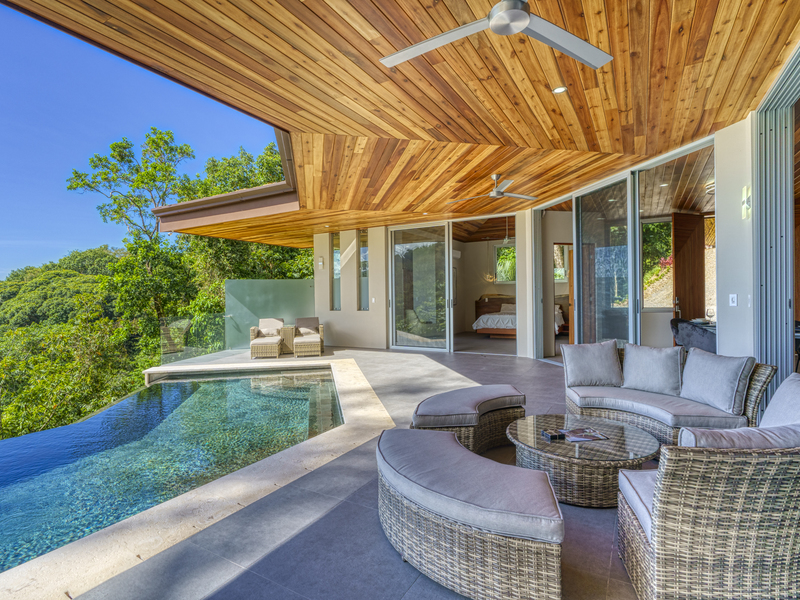You slip into the cool waters of your infinity pool and gaze across the jungle to the ocean. The sky is vivid as the sun sets, and you find yourself in awe of the rugged beauty of nature. The only sounds you hear are the gentle rush of waves and the calls of tropical birds.