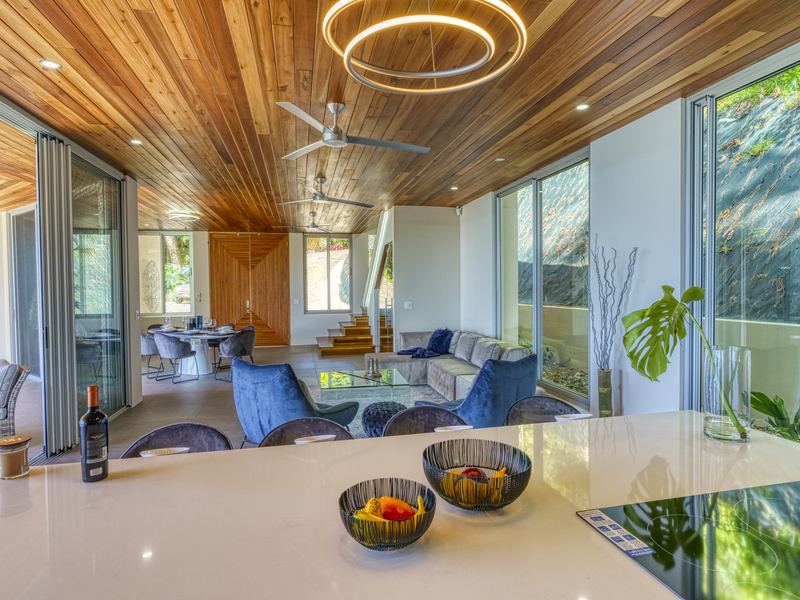 Casa Sulit was built for living life to its fullest. The main floor features an open living space where the interior flows effortlessly into the exterior. The outdoor living space features a large patio with an infinity pool and ample room for sun loungers and outdoor dining and seating. Fire up the barbecue and enjoy Costa Rica’s warm nights dining under the stars. This beautiful home is an entertainer's delight with plenty of room to host family gatherings and sophisticated soirees. It features a gourmet kitchen, a walk-in pantry, and the space under the stairs has been intelligently utilized as a walk-in wine cellar with a glass wall so you can show off your collection.