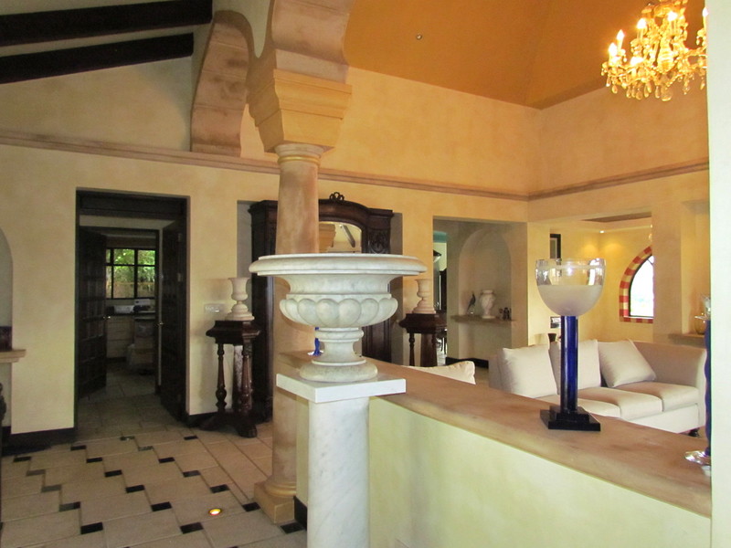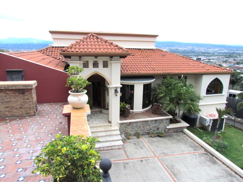 Located in the most sought after neighborhood of Escazú, this spacious house of 530m2 of construction on a 1000m2 land where you can easily build a pool, is inspired by Moorish architecture offers amazing views of the valley. On the first floor, there is a huge living room with TV corner, bar and Jacuzzi; surrounded by windows to enjoy the view. The kitchen is fully equipped with state of the art stainless steel appliances, extended by a dining room leading to the terrace. You will also find the laundry room and maid’s quarters. Going down, the gigantic master bedroom has a great sized bathroom, closets and a jacuzzi. The two other bedrooms share the second bathroom; all of them open onto the garden. Finally, there is another terrace on the top of the garage with a bar and Jacuzzi from where you will experience the most amazing sunset with 360° views. This house is absolutely unique in style, elegantly decorated and has luxury finishes. Also available for rent fully furnished at $4,000/month. Call us now if you want a chance to visit this masterpiece.