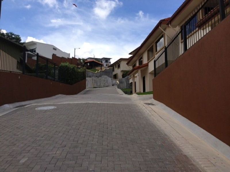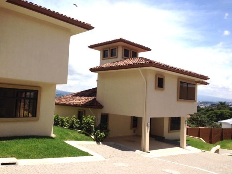 Bonito townhouse en un hermoso complejo residencial con pocas casas. Se encuentra ubicado en Guachipelín, Escazú. La casa tiene 269 metros cuadrados de construcción en un lote de 417 metros cuadrados. La casa tiene 3 recámaras, 2.5 baños, patio privado y estacionamiento para 2 autos. En su primer nivel esta la sala de estar, comedor, cocina abierta con desayunador y sobres de granito, baño de visitas; dormitorio de servicio con baño, bodega y area de pilas. En el segundo nivel se encuentra el dormitorio principal con amplio walk-in closet, baño principal con accesorios de primera calidad, y armario empotrado; la casa cuenta con 2 habitaciones secundarias con closets y un baño compartido por estos dos últimos. El condominio cuenta con una zona de juegos para niños, jardines y seguridad las 24 horas. Se encuentra en una zona de alto valor y plusvalia muy cerca de centros comerciales, centros de negocios, escuelas, y sólo 5 minutos del Hospital CIMA y el Mall Multiplaza. Desde $316,000