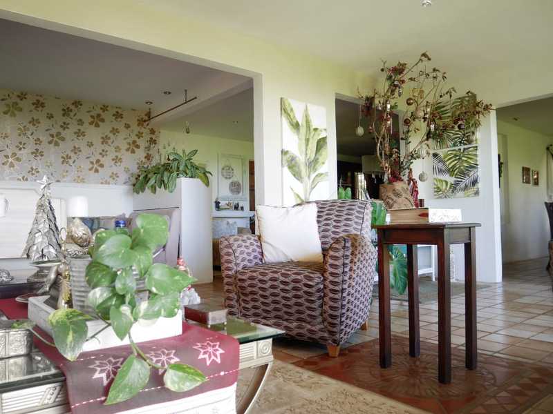 3 bedrooms, the main one with reading area and walk-in closet 2.5 bathrooms Big room Kitchen with island Reading room off the kitchen TV room Office Battery room 2 terraces, front and back Store Side walls Two car garage