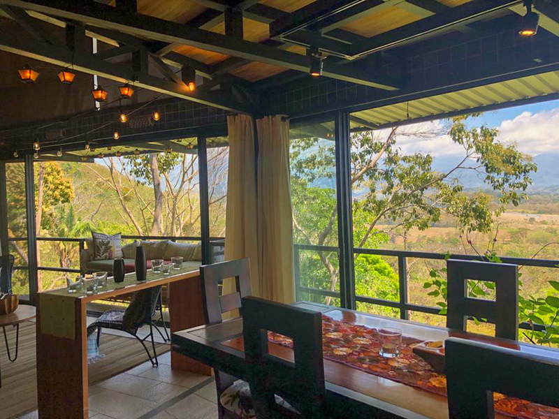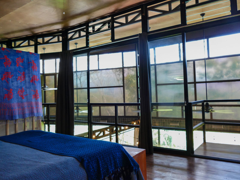 Upstairs there are two bedrooms with one full bath and an additional half bath, plus a sitting room den. One of the upstairs bedrooms is currently being used as a private gym and yoga studio. All three rooms are loft-style, overlooking the living room below and they all have the same stunning valley, river, and mountain views as the floor below. You will delight in waking up each day to the most expansive and amazing sunrise view! The home is designed for energy efficiency and is cool, even at midday. The master bedroom suite is air-conditioned. With small modifications, the remaining living space in the house can be air-conditioned with split AC units. Built with galvanized steel beams and panels, the home is easy to maintain with no worries about mold or termites in the tropical environment.