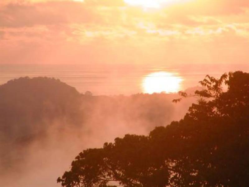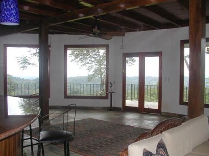 This newly built 5500 sq. foot home sits like a treehouse above the forest canopy on 36 acres of private estate land. The estate is set just above the quaint town of Villanueva, just a 20-minute drive from the world-famous Manuel Antonio national park and all the amenities and services of the town of Quepos. The farm offers elevations that start at 500 feet above sea level and go up to 1000 feet which provides an amazingly temperate climate in which you can live in total comfort year-round. The house itself is all new construction built to exacting standards and includes almond wood floors, stainless steel appliances, imported slate floors and decks, satellite television, and even 3G internet services.