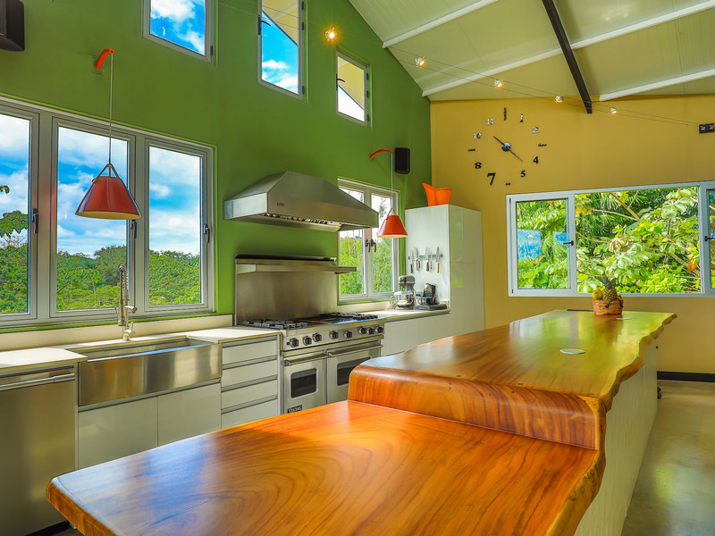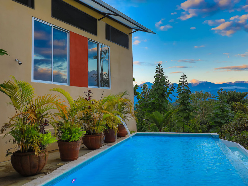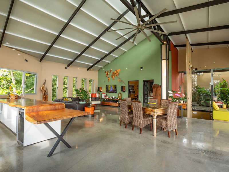 Designed by the owners, their 20+ years in Costa Rican is brought to bear on every thoughtful and satisfying detail. An a-symmetrical roof has imported Italian motor-operated windows to allow heat to escape. A solar panel powers the pool pump, All electrical outlets imported to ensure quality. The German-made toilets, Turkish bathroom sinks, retractable mosquito screens, and custom bedroom doors are all of the highest quality. Fiber optic 100 MG internet is available throughout the home as well as the large workshop at the bottom of the property. The main floor is also wired to support a complete surround sound system.
