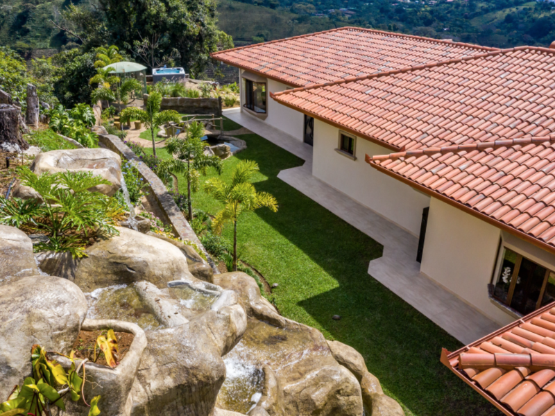 This property is located within residences Oro Monte only 2 kilometres from downtown Naranjo. This beautiful property has 10.000 square meters of land and 500 meters of construction distributed in 3 rooms, 2 bathrooms and 1 restroom, living room, kitchen with island and pantry. The Garage has space for two vehicles surrounded by beautiful gardens and amazing views of the central valley and mountains.Additionally, it maintains a beautiful and exemplary waterfall adorning the place, Jacuzzi, and an automated intelligent system that you can control the house through your cell phone.