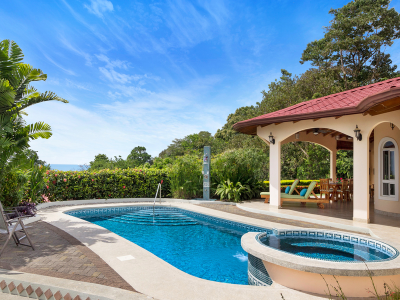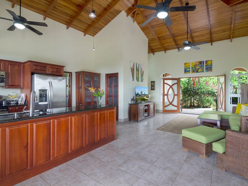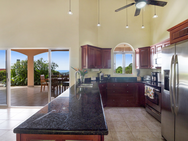 The huge patio has fantastic views of the ocean, jungle, and the beautifully landscaped property, full of tropical plants and flowers! With its outdoor seating and dining areas, it is perfect both for entertaining and as a peaceful retreat - enjoy the peace and tranquility of the jungle with a morning cup of coffee or an evening glass of wine as you watch the brilliant colors of the sunset melting into the Pacific Ocean in the distance!
