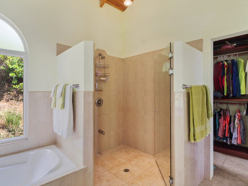 The double front doors are lovely frosted glass with modern design, leading to the comfortable open concept living area. The kitchen is amazing, with granite countertops, high-end stainless-steel appliances, custom cabinetry, and tons of workspace on the long countertops! A large walk-in pantry and lots of cabinets provide plenty of kitchen storage. Down the hallway, there are two bedrooms for guests that may want to join you! The two guest bedrooms are spacious and comfortable. The master suite located on the other side of the home for privacy has an ensuite bathroom with a luxurious soaking bathtub! A large walk-in closet has plenty of space for all your things and extra storage. French doors lead from the master bedroom to an extra bonus room with gorgeous views, which can be an office, studio, or private seating area. The master bedroom has air conditioning, but with the gentle ocean and mountain breezes keeping things comfortable, you probably won’t even need it!