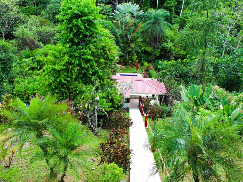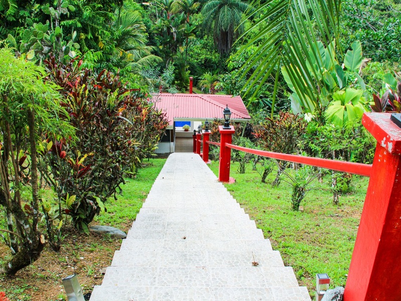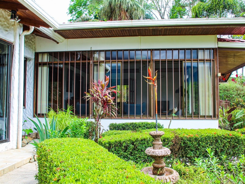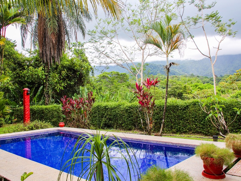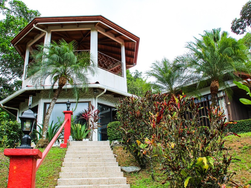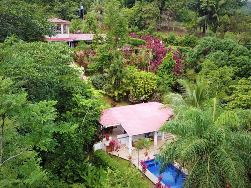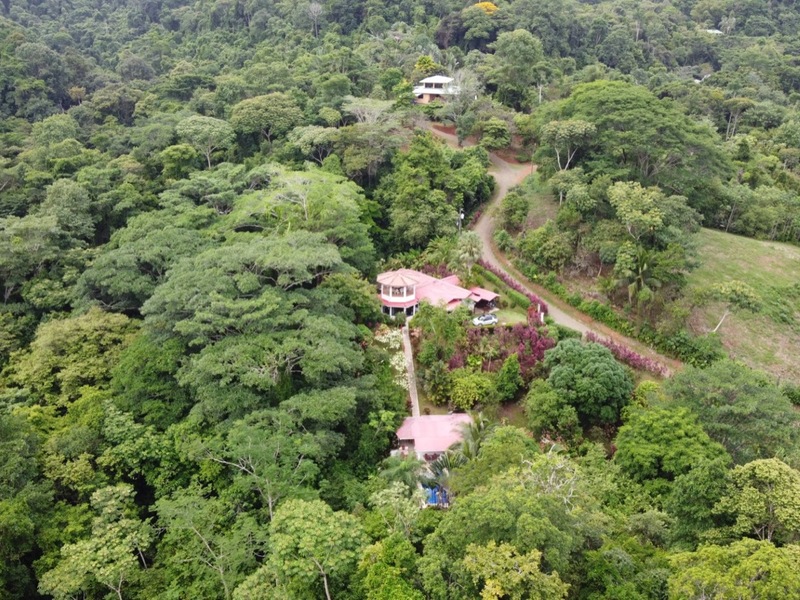 This beautifully and lushly landscaped 4.5-acre property with breathtaking mountain views is located in the desirable Finca Marañon jungle estate development. So much to explore throughout the 4.5-acre property with numerous mature fruit trees including citrus, mango, and avocado, and a path from the pool winds down through the jungle to a creek. The ocean view and sunsets for several months of the year can be admired from the 2nd story gazebo, and several waterfalls are visible on the mountainside during rainy season. Walking through the gardens is an absolute delight. This property needs to be seen to be