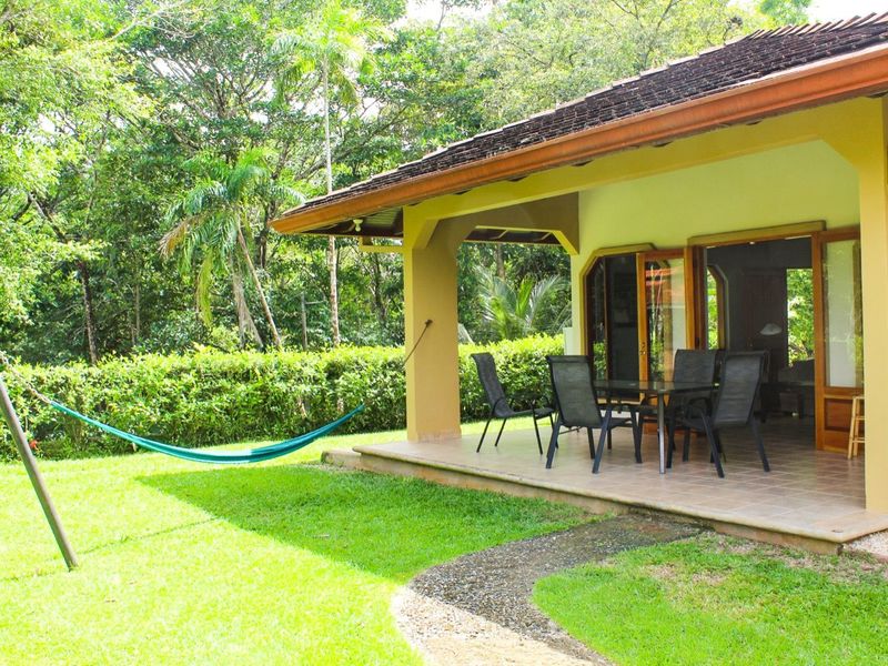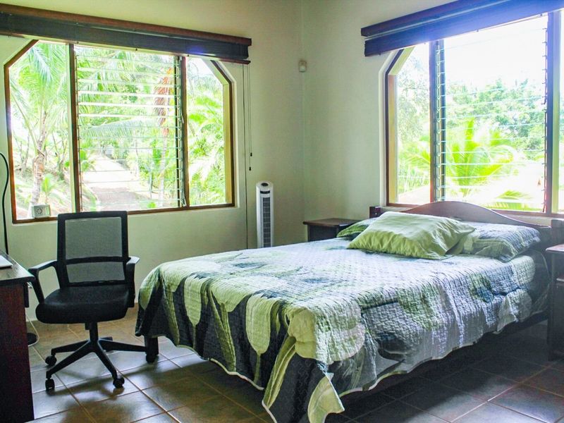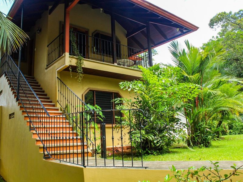 Find yourself feeling at home on a lovely, elevated, and fully landscaped piece of paradise in the jungle, yet near the center of Ojochal. Situated nearby the home is a year-round creek that babbles between old-growth trees, welcoming dozens of species of tropical birds, butterflies, and mammals to its abundant buffet. Not only does the green space that borders this property attract the amazing wildlife that Costa Rica is known for, but it also creates a tranquil sanctuary on this property. You feel a bit removed from the hubbub of humanity, yet it is only a 2-minute drive to restaurants and shopping, and 10 minutes to beaches.