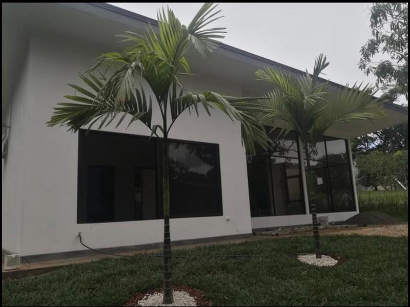 Newly built contemporary home in a 24/7 guarded upscale gated community. Three good sized bedrooms and two bathrooms. Lots of glass which opens the home even more. Right off Rt 27 which makes this home just 20 minutes to the beach and 40 minutes to SJO international airport. There is a large community pool with large BBQ area.