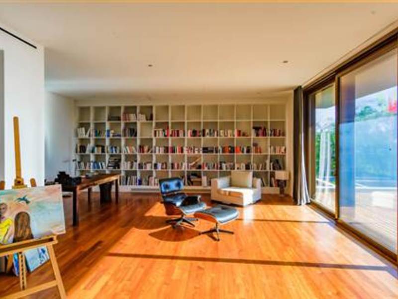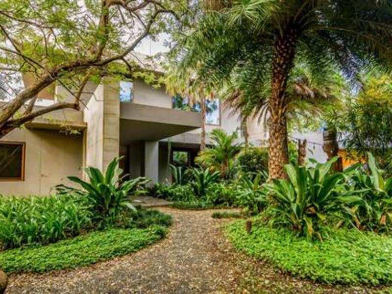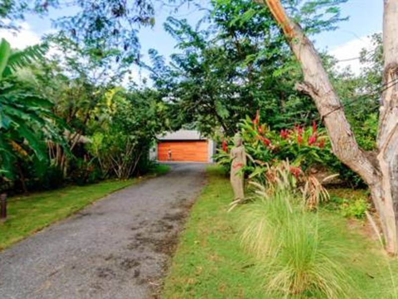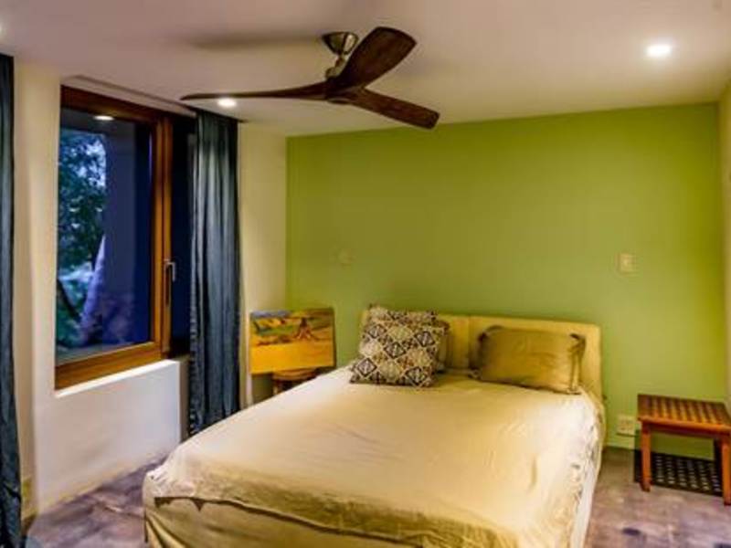 Attention to detail in this meticulous build is evident in every space. Floors are Costa Rican oiled teak and colored concrete. Enter through the custom handmade Balinese mandala doors to a spacious living and dining room that looks out onto the pool and garden through floor to ceiling glass sliding doors. Stairs to the right lead to a massive home office and bathroom suite on the second level, with sweeping views of the back garden and the ocean beyond. With a full wall of shelves, this is the perfect place for working from home! This space can easily be converted into 2 bedrooms with a jack and jill bathroom.