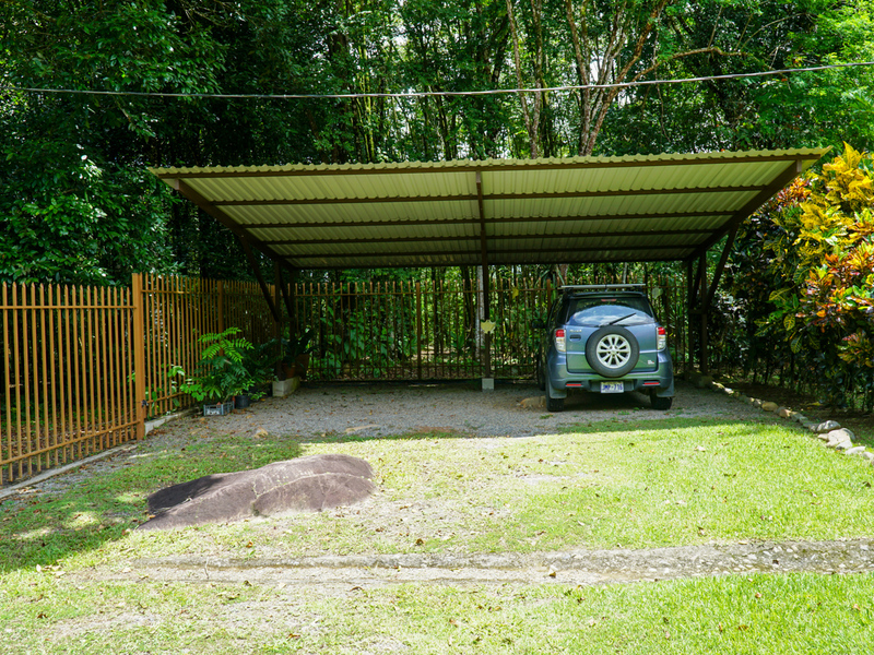 Approximately 8500 square meters are in conservation with good-sized native trees. Finally, approximately 8000 square meters are occupied by beautifully designed gardens and structures. The property boasts a beautiful 12+ year collection of palms, heliconia, gingers, orchids, lilies, passion flowers, colorful summer flowering ornamental trees and multiple plants specially planted to attract birds and butterflies.
