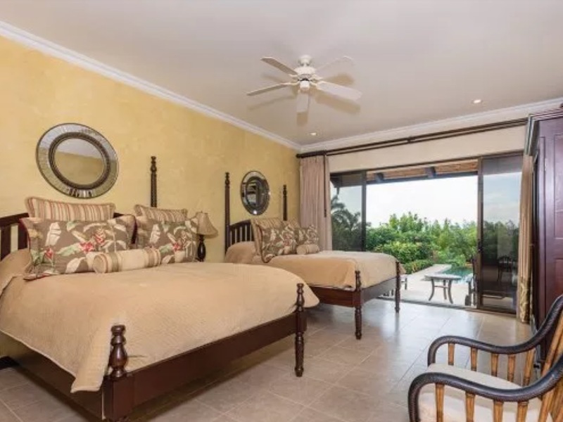This three-stories villa will leave you speechless with its spectacular ocean, golf, and mountain views. The property is located within the luxury beachfront gated community of Reserva Conchal, where you will find all the world-class infrastructure and amenities. The entrance is into the middle floor which has a laundry room, powder room, kitchen, living room, and a dining room. These areas integrate with a great size terrace ideal to soak up the magnificent views of the Pacific Ocean. Heading upstairs you will find the master suite, ample space within the bedroom and the bathroom, hosting 2 showers, and 2 walk-in closets. This floor also has a nice TV area and terrace if you prefer to enjoy the views from here. Heading down to the downstairs area we have 2 en suite bedrooms with outside showers and a very large living room area in the middle. Both downstairs bedrooms and living room area have sliding doors that lead to the pool area, where there is a gazebo ideal for a barbeque. The pool area does have a powder room for easy convenience when enjoying the pool area, it also has an outside stairwell that leads into the middle floor.