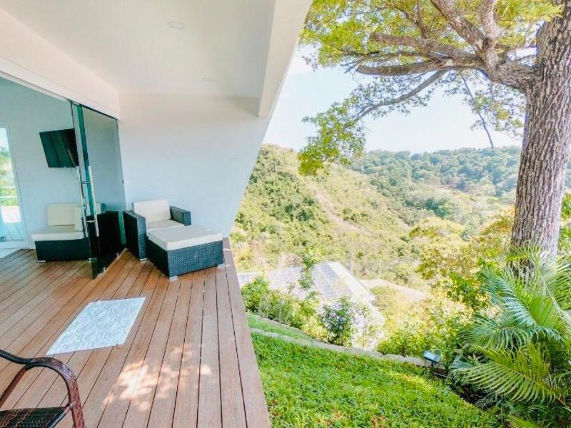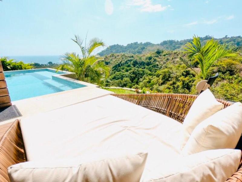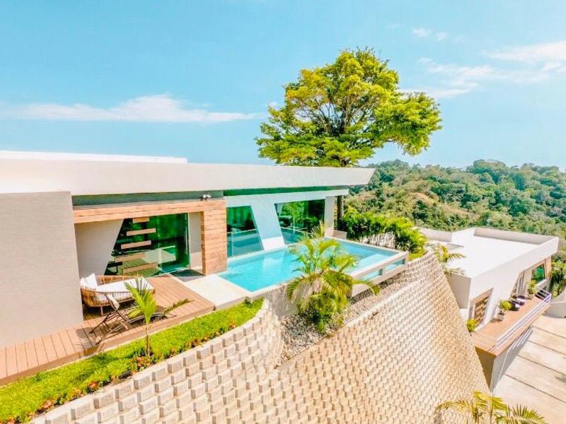 This stunning contemporary home is perched on the hillside with amazing ocean views. It is ideally located in Playa Hermosa not far from the beach with spectacular sunset views. The home is designed for entertaining both indoors and out. It features a large gourmet kitchen with all appliances and designer finishes. It was carefully designed and built by one of the most famous architects in Costa Rica and is a unique and very luxurious home. Large living area, 3 spacious bedrooms, and 3 baths. One of the spectacular features is the roof top sundeck for enjoying a fun times at this beach home.