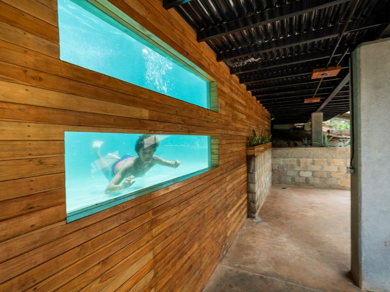 The ground level homes the smaller of the guest rooms, this room offers an ensuite bathroom and twin bed made from local hardwood and ample storage.