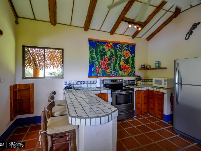 Villa Ilan Ilan was designed and built by renowned architecture firm, Zurcher Arquitectos. The designers wanted to create an engaging tropical fusion design that blends indigenous and Spanish-colonial styles of homes. The centerpiece of the home is the 35 foot high majestic circular rancho that makes up the living area. The rancho creates a cool open living space that allows a consistent air flow and you can enjoy the stunning ocean views the property offers. An extended elevated deck from the rancho is the perfect place for a yoga practice while enjoying the amazing views.