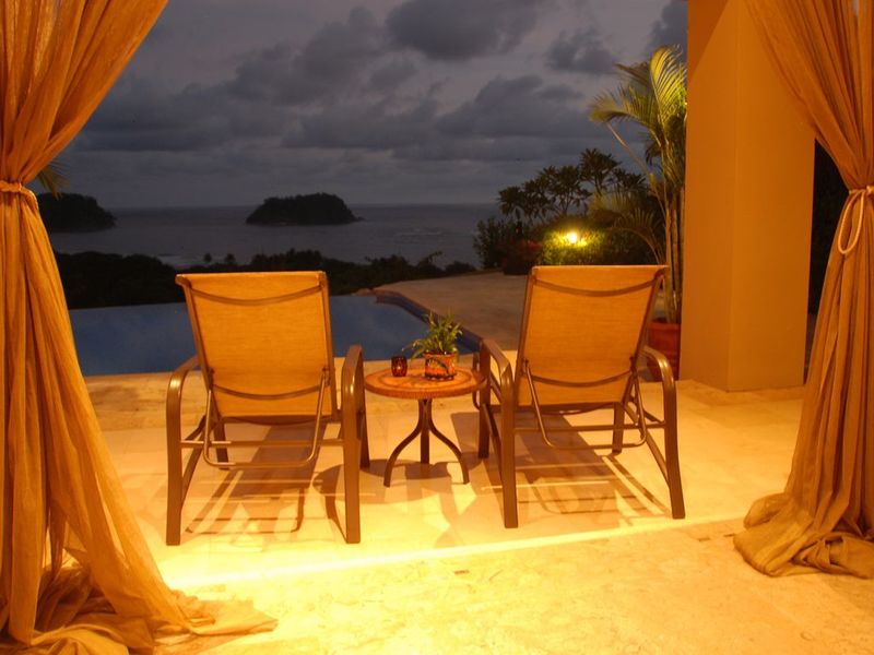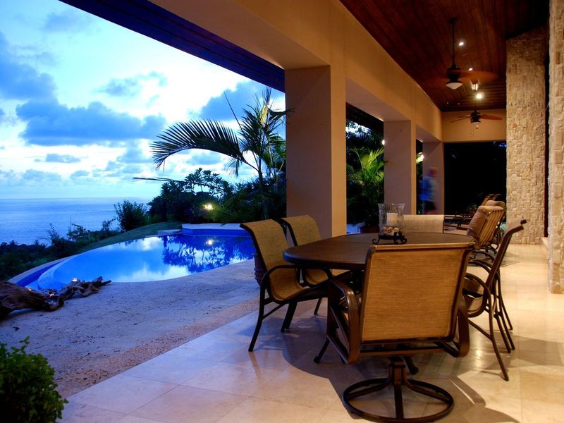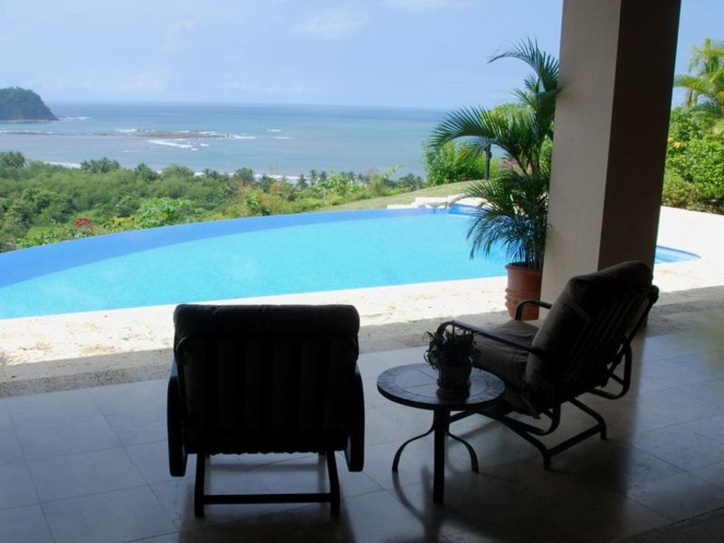 IDEAL investment for the discriminating home owner, there is nothing VILLA VISTA does not have! From the mammoth Living/Dining area with 22-foot vaulted ceiling, to the fully-equipped gourmet Kitchen, to the air-conditioned Library/Media room with large flat-screen TV, to the grand king Master Suite and 2 air-conditioned Guest Suites (queen and 2 singles/king), the open floor plan gives you breathtaking views overlooking the large infinity pool to some of the most spectacular vistas in all of Costa Rica. Even the outdoor Bar/Kitchen --- complete with DCS gas grill and side burner, clear ice maker, beer/wine cooler and more --- enjoys these breathtaking sights as well as the constant ocean breeze and subtle sounds of the breaking surf. You will look forward to daily visits from red winged parrots, hummingbirds, roseate spoonbills, wood storks and howler monkeys as well as the ever-present fragrance of the ylang ylang tree (the essence of Chanel #5) that welcomes you at the front entrance and is only one of many tropical beauties in the private gardens. The entire home opens directly onto the full width Terrace and infinity pool --- focal point of Costa Rican living --- and the perfect place to watch the world awaken, relax and lose yourself in a selection from the large library, sip a cocktail or two or enjoy a romantic dinner (private gourmet chef available). The many amenities of VILLA VISTA include full stainless Bar and Kitchen with granite counter tops, European travertin and stone floors throughout, imported marble walls and vanities in all 3 baths, exotic outdoor jungle shower, indoor/outdoor high fidelity stereo system, 2 large flat screen TVs with cable, VCR and DVD player, telephones, security alarm system, safe, extensive video library and Wi-Fi . It would be costly to construct a new home with all these upgrades and amenities! Great opportunity to purchase the perfect vacation home with the added rental income incentive!