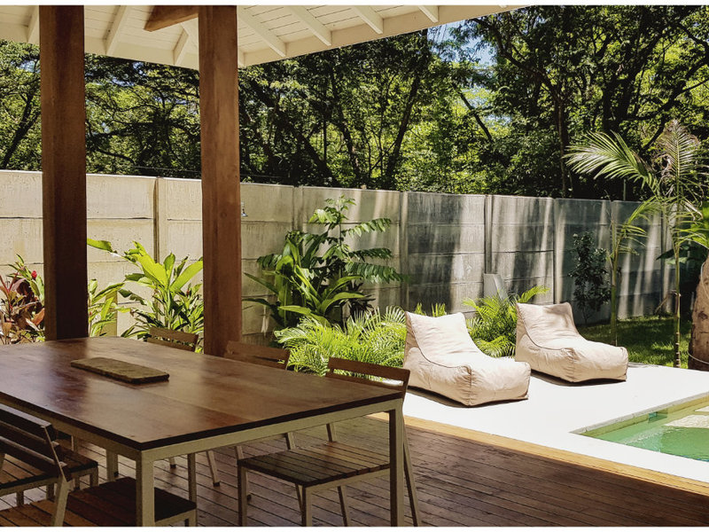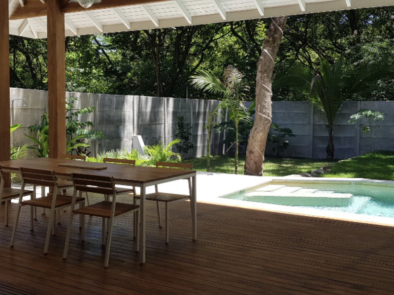A giant teak terrace extends your living space outside into the beautiful garden featuring a swimming pool and loads of trees including quintessential Costa Rican favorites like Guanacaste and Tiger Hand plus several varieties of fruit trees (dwarf coconut, lemon, grapefruit, banana) all watered with an automatic watering system.