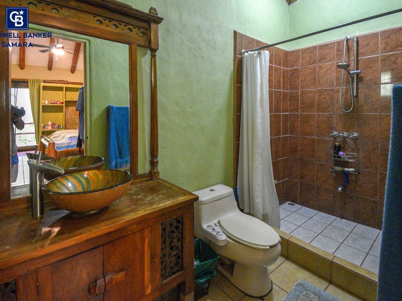 The home is surrounded by lush tropical gardens and is located just 3 minutes on a paved road to Carrillo beach. The property includes adequate land behind the main structure that could be developed for cabinas. All furnishing including a washing machine are included with the sale.