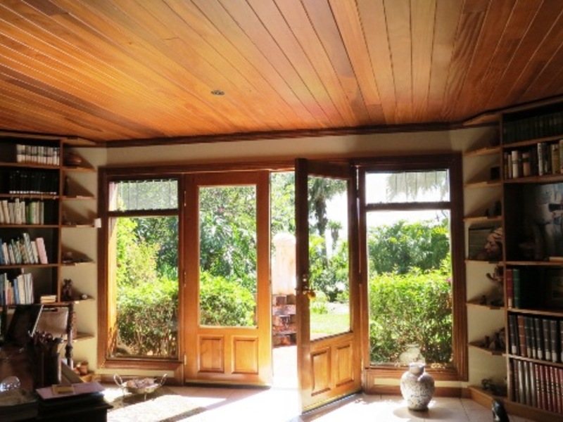 De los atractivos mas grandes de esta casa son sus hermosas áreas sociales, su amplio y acogedor es perfecto para tener una cena formal con amigos. Al igual que la hermosa sala que tiene una hermosa chimenea que la hacen mas acogedora, además la sala tiene techos artesonados de hermosas maderas semi-preciosas hacen está casa muy acogedora y perfecta para estar en compañía de amistadas y familia. Esta increíble casa también es perfecta para los amantes de la naturaleza porque cuenta con un jardín diseñado a la perfección con pozas con peces Japonese, bancas para sentarse y admirar la mariposas y los pájaros que visitan a diario el jardín, senderos de piedra para caminar y admirar la gran variedad de plantas, también hay un amplio vivero de orquídeas. Esta casa de 800sqm, tiene dos amplias oficinas cada una con una hermosa chimenea,que también se pueden usar de cuartos de huéspedes.
