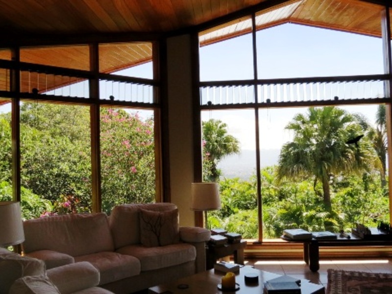 Three levels Single Family Home in Heredia for sale: This truly unique home offers privacy in the mountain area of San Rafael de Heredia. It gives you the feel of living in a private nature paradise. The home has an open feeling with a lot of tall windows, plenty of natural light, nice terraces to enjoy the stunning views in every direction. This contemporary home has 3 bedrooms and 3 full baths plus the maid’s quarters. The master bedroom is ample, with a private garden and terrace, a nice balcony to enjoy the view, tiled floor, and ample walk in closet with Euromobilia furniture. The master bathroom is also ample, with double sink tiled counter top, built-in tub, independent shower, toiled and bidet. Additionally, the master bedroom has direct access to a private garden and sauna. The secondary bedrooms have a nice size and one bedroom has its own private terrace overlooking the garden. One the biggest attractions of this house is the beautiful wide and welcoming social areas, the dining rooms is perfect for a formal dinner with friends. The beautiful living room has a beautiful fireplace with make it more welcoming, it also has beautiful coffered ceilings make with semi precious woods, this room is very cozy and perfect to enjoy the company of friendships and family. This amazing home is also perfect for nature lovers because it has a garden designed to perfection with Japonese fish ponds, benches to sit and admire the butterflies and birds that visit the garden daily, walking trails made of stone, an incredible amount of plants, there is also a large orchid nursery. This 800sqm house has two spacious offices each with a beautiful fireplace, which can also be used for guest rooms.