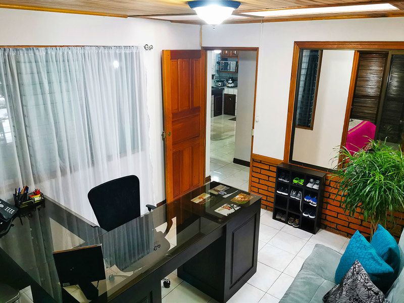 In this gorgeous town sits this astonishing home, with beautiful artisanal wood handcraft ceilings, a perfect size terrace to enjoy on the afternoons, and a great social area to enjoy with your friends, exercise, or relax. This single-story home with three bedrooms and one big office, the one that could also be turned into a fourth bedroom. The master bedroom has a private bathroom and a spacious closet made of precious wood. From the main bedroom, you can access the social area thru sliding glass doors. The two remaining bedrooms both have wooden wardrobes and share a full, spacious bathroom.