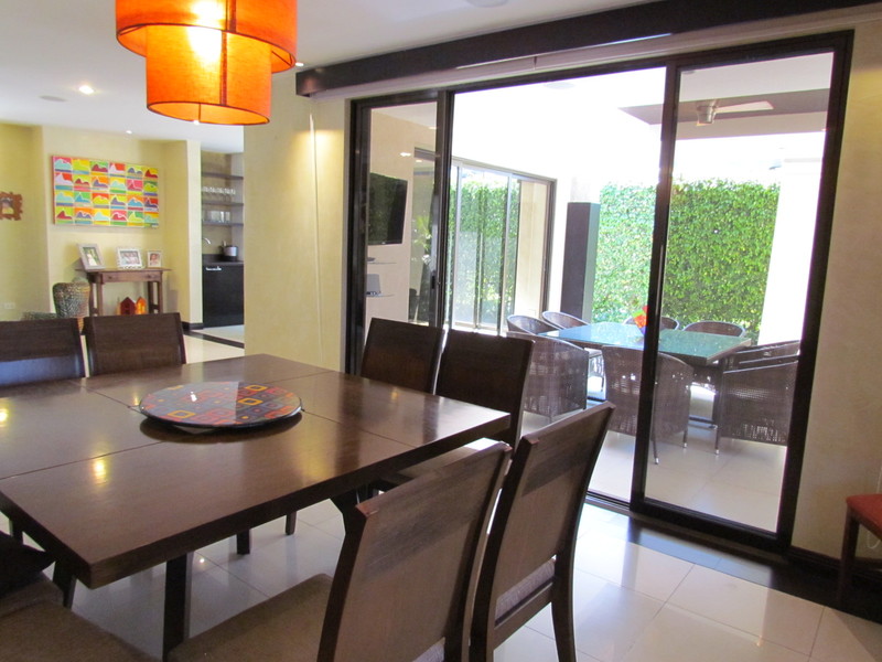 Esta hermosa casa mide 330m2 (3.552 pies cuadrados) de construcción y tiene 3 dormitorios, cada uno con baño privado; baño de visitas, más cuartos de servicio; Cuarto de televisión; doble sala de estar principal, bar / salón, amplia cocina con isla, encimeras de granito, un montón de gabinetes de madera, área de desayuno y mucha luz natural; una terraza cubierta muy grande con uno de los lotes más grandes en el condominio para un patio trasero de buen tamaño. Un montón de área de almacenamiento (salas de almacenamiento y un ático) y un garaje para dos autos. La casa también tiene algunos detalles y extras que deben destacarse: aires acondicionados (mini Split) en todas las habitaciones, lámparas LED, cortinas, etc.