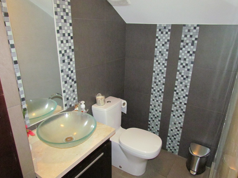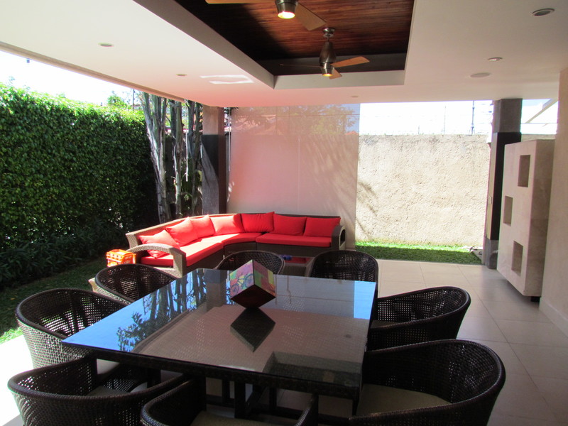 This beautiful house measures 330m2 (3552 sq ft) of construction and has 3 bedrooms, each with private bath; guest bathroom, plus maid's quarters; TV room; double main living room, Bar/Lounge, large kitchen with an island, granite countertops, plenty of wood cabinetry, breakfast area and lots of natural light; a really large covered terrace with one of the largest lots in the condominium for a good-sized backyard. Lots of storage area (Storage rooms and an Attic) and a two-car garage. The house also has some details and extras that should be highlighted: Air conditioners (mini Split) in all bedrooms, LED lamps, curtains, etc.