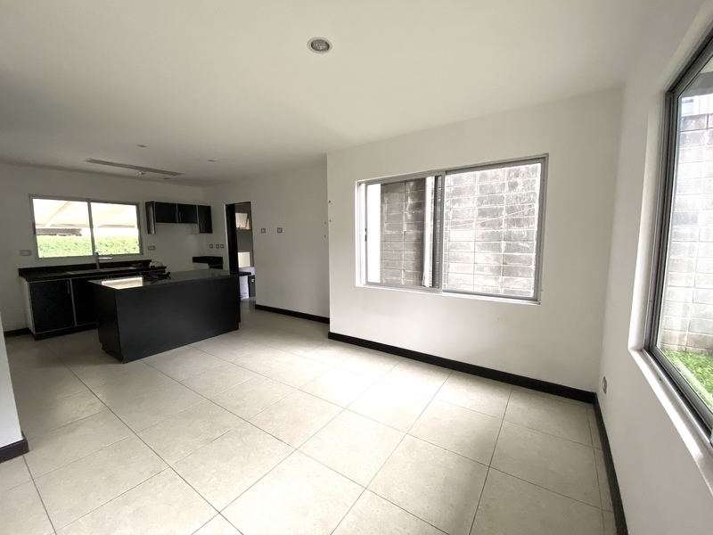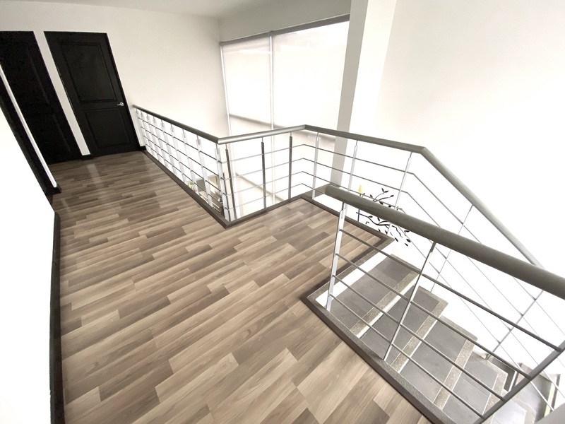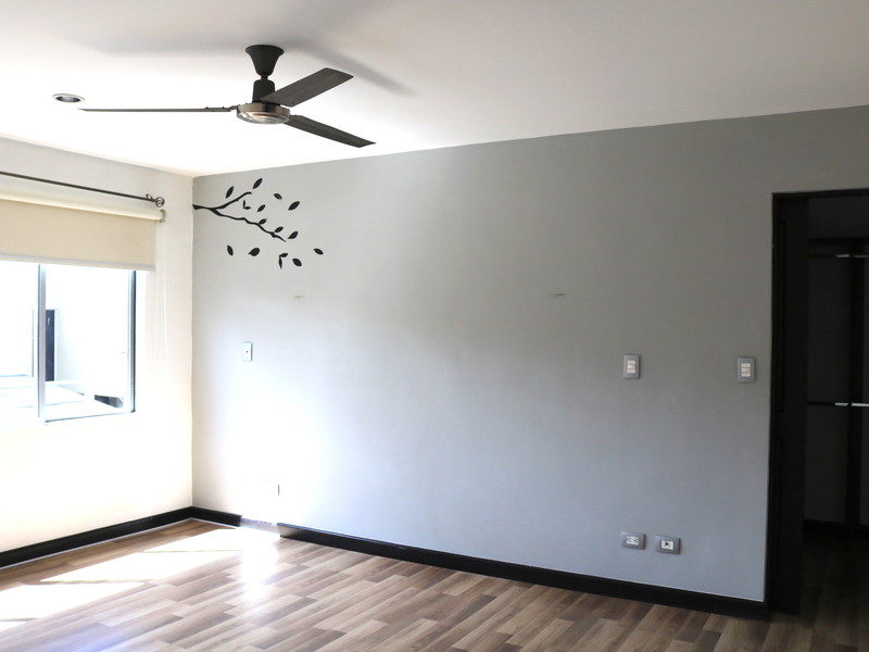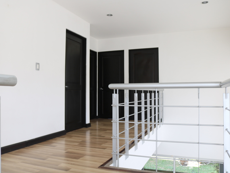 Segundo piso: Amplio dormitorio principal con baño completo privado y walk-in closet, 2 dormitorios secundarios de buen tamaño con grandes ventanales, otro baño completo, y una pequeña área de estudio/oficina.